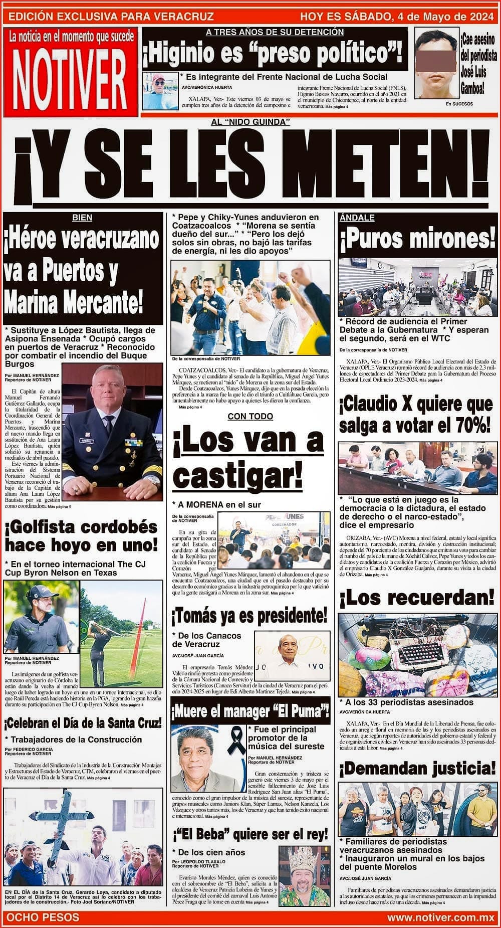 PRIMERA LA PORTADA - SÁBADO 4 DE MAYO 2024 AL “NIDO GUINDA” - * PEPE Y CHIKY-YUNES ANDUVIERON EN COATZACOALCOS * “MORENA SE SENTÍA DUEÑO DEL SUR...” * “PERO LOS DEJÓ SOLOS SIN OBRAS, NO BAJÓ LAS TARIFAS DE ENERGÍA, NI LES DIO APOYOS” 4 mayo 2024 Y LOS ANUNCIOS...