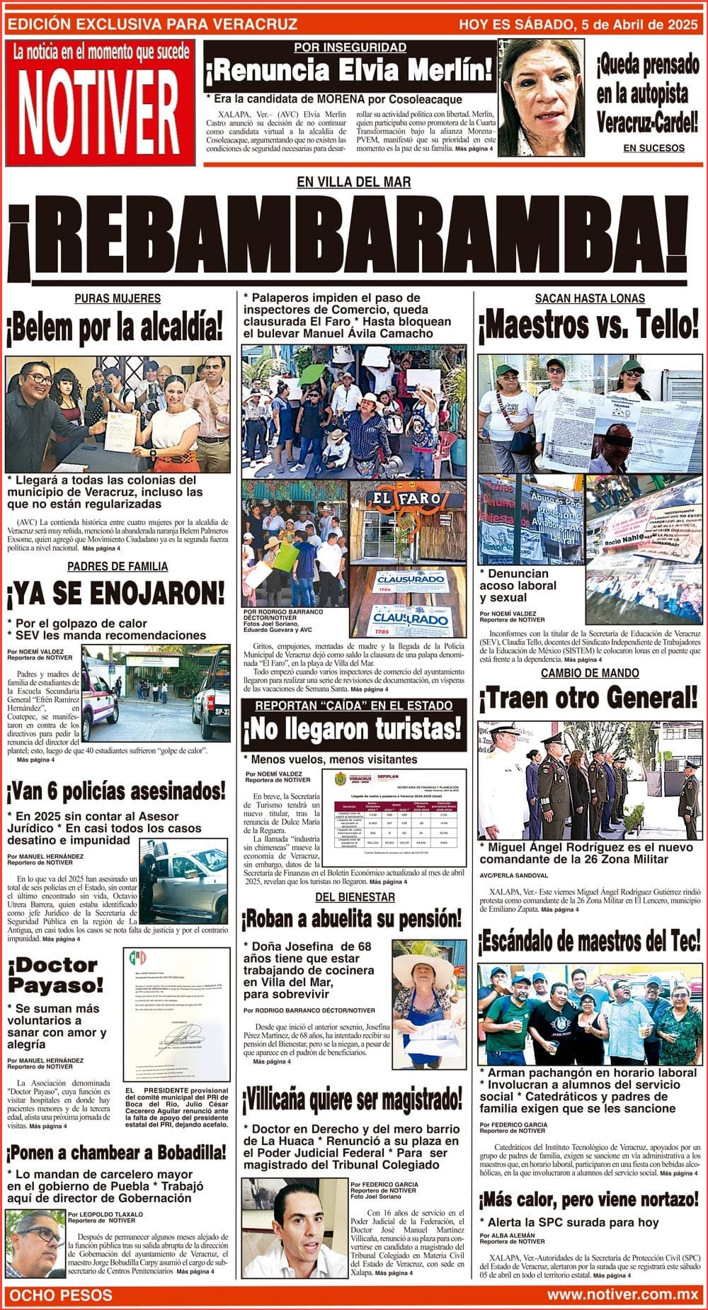 PRIMERA LA PORTADA - SÁBADO 5 DE ABRIL 2025 EN VILLA DEL MAR - *PALAPEROS IMPIDEN EL PASO DE INSPECTORES DE COMERCIO, QUEDA CLAUSURADA EL FARO *HASTA BLOQUEAN EL BULEVAR MANUEL ÁVILA CAMACHO 5 abril 2025