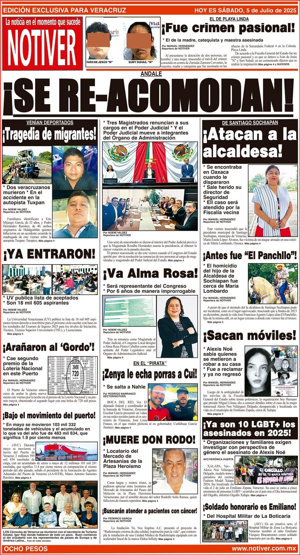 PRIMERA LA PORTADA - SÁBADO 5 DE JULIO 2025 ÁNDALE - *TRES MAGISTRADOS RENUNCIAN A SUS CARGOS EN EL PODER JUDICIAL *Y EL PODER JUDICIAL MUEVE A INTEGRANTES DEL ÓRGANO DE ADMINISTRACIÓN 5 julio 2025