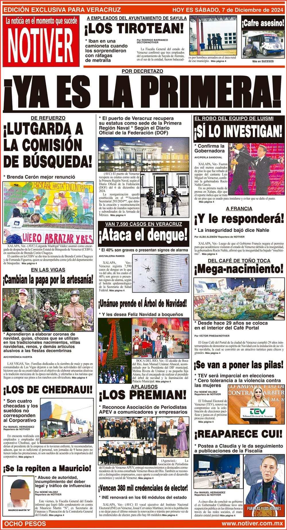 PRIMERA LA PORTADA - SÁBADO 7 DE DICIEMBRE 2024 POR DECRETAZO - *EL PUERTO DE VERACRUZ RECUPERA SU ESTATUS COMO SEDE DE LA PRIMERA REGIÓN NAVAL *SEGÚN EL DIARIO OFICIAL DE LA FEDERACIÓN (DOF) 7 diciembre 2024