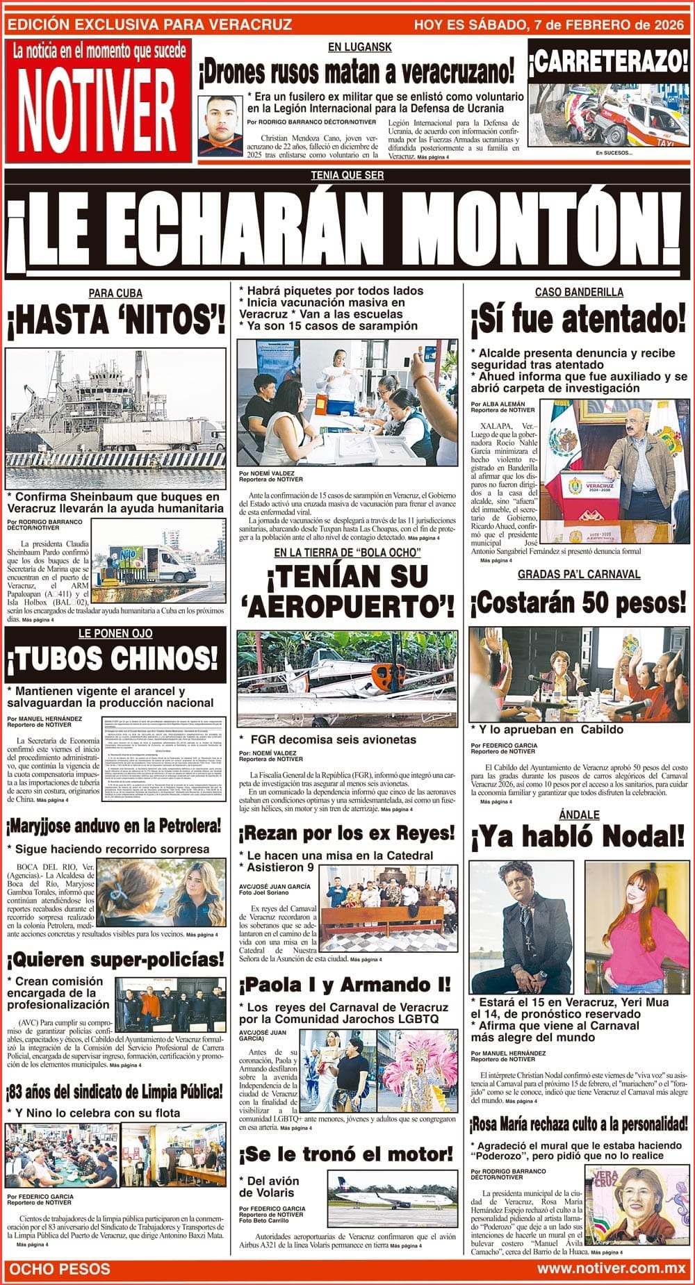 PRIMERA LA PORTADA - SÁBADO 7 DE FEBRERO 2026 TENIA QUE SER - *HABRÁ PIQUETES POR TODOS LADOS *INICIA VACUNACIÓN MASIVA EN VERACRUZ *VAN A LAS ESCUELAS *YA SON 15 CASOS DE SARAMPIÓN 7 febrero 2026