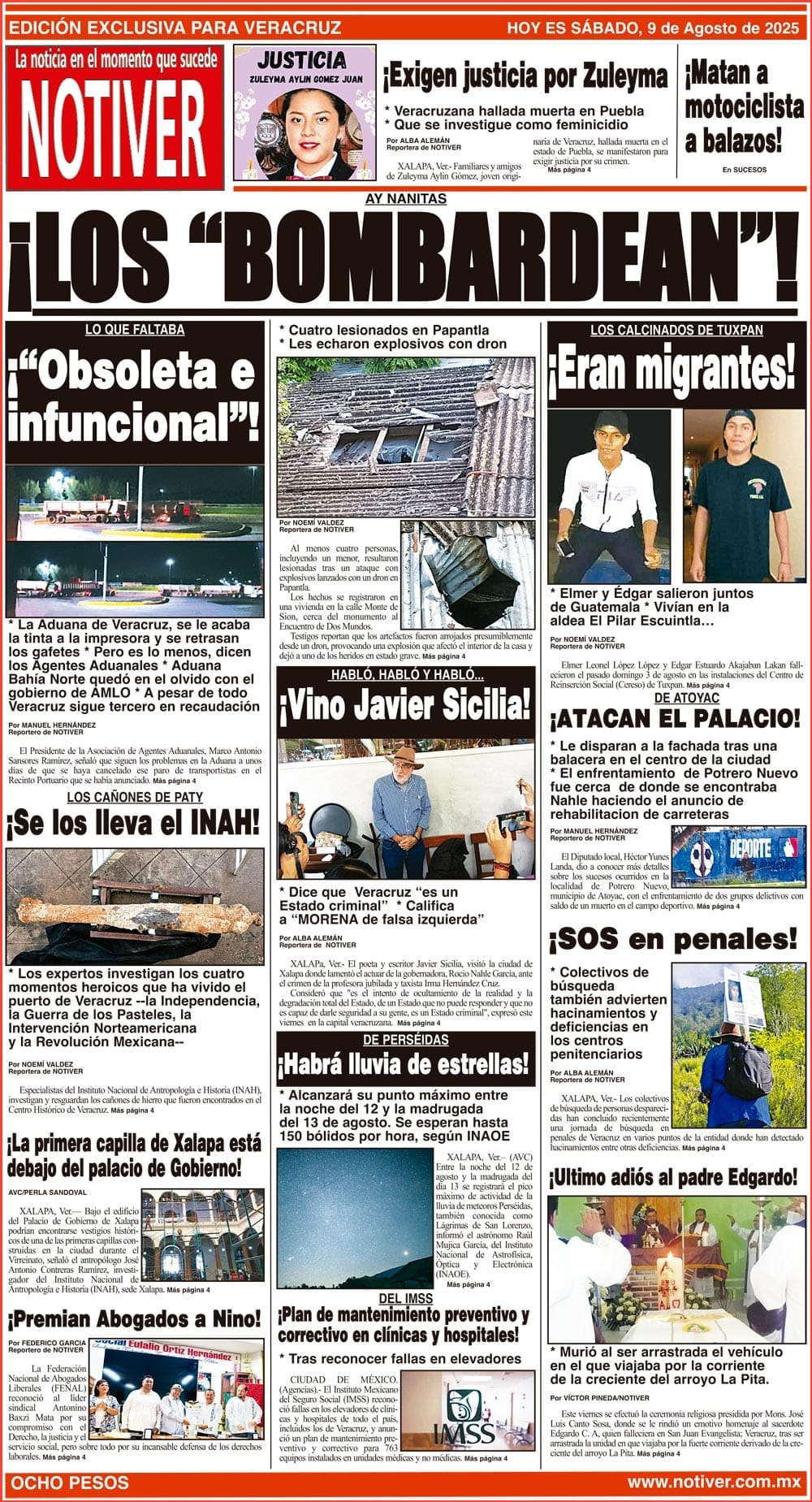 PRIMERA LA PORTADA - SÁBADO 9 DE AGOSTO 2025 AY NANITAS - *CUATRO LESIONADOS EN PAPANTLA *LES ECHARON EXPLOSIVOS CON DRON 9 agosto 2025