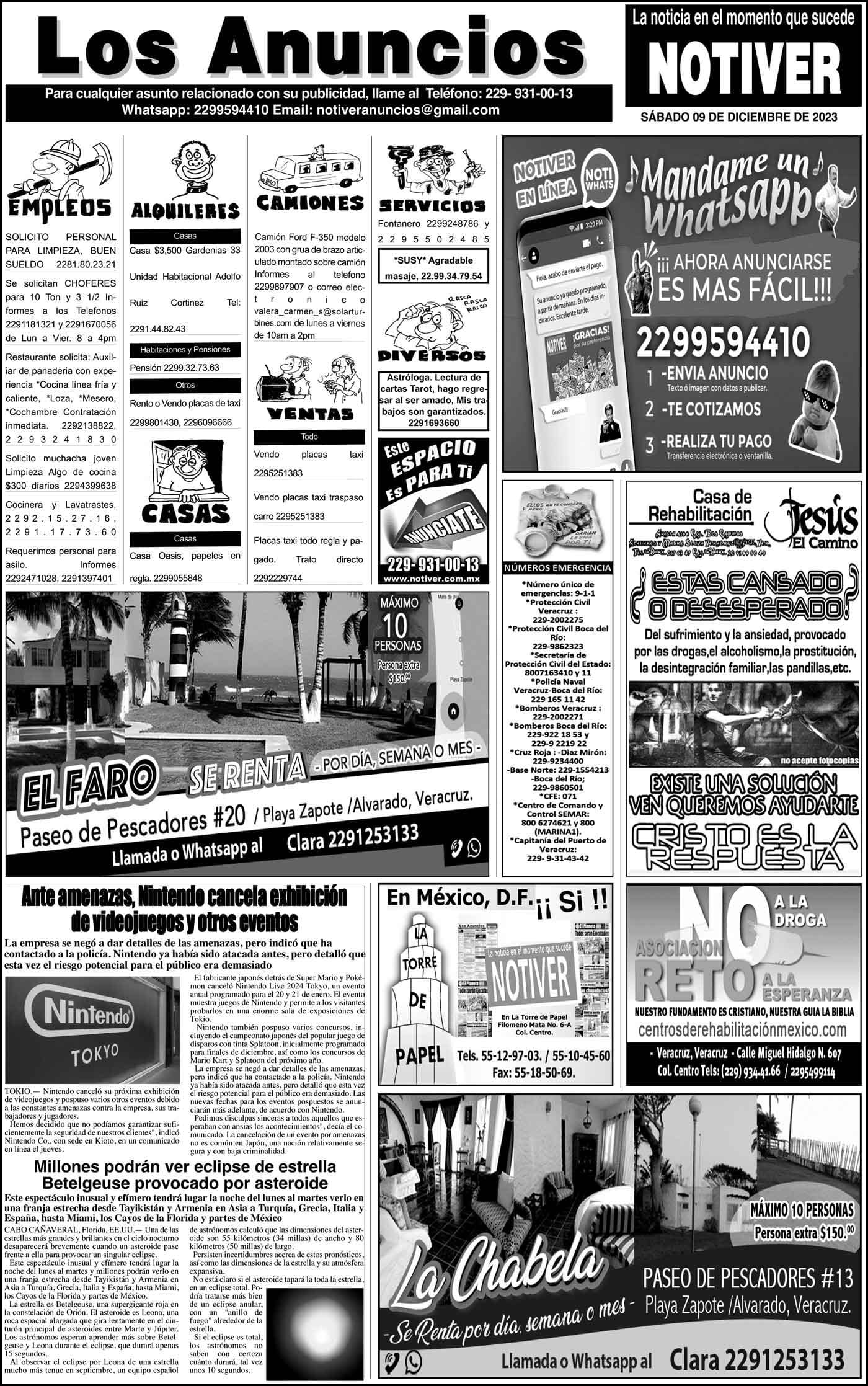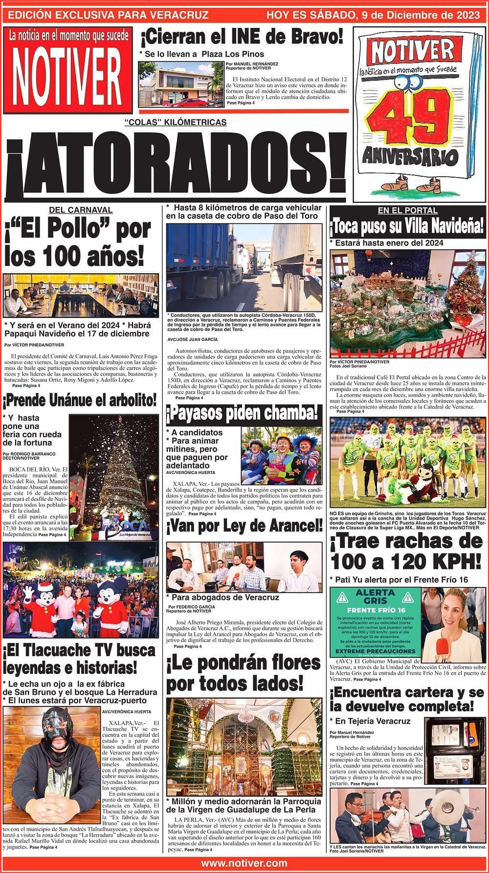 PRIMERA LA PORTADA - SÁBADO 9 DE DICIEMBRE 2023 “COLAS” KILÓMETRICAS - * HASTA 8 KILÓMETROS DE CARGA VEHICULAR EN LA CASETA DE COBRO DE PASO DEL TORO 9 diciembre 2023 Y LOS ANUNCIOS...Cotice su Anuncio Su Correo Electrónico: Texto: Enviar