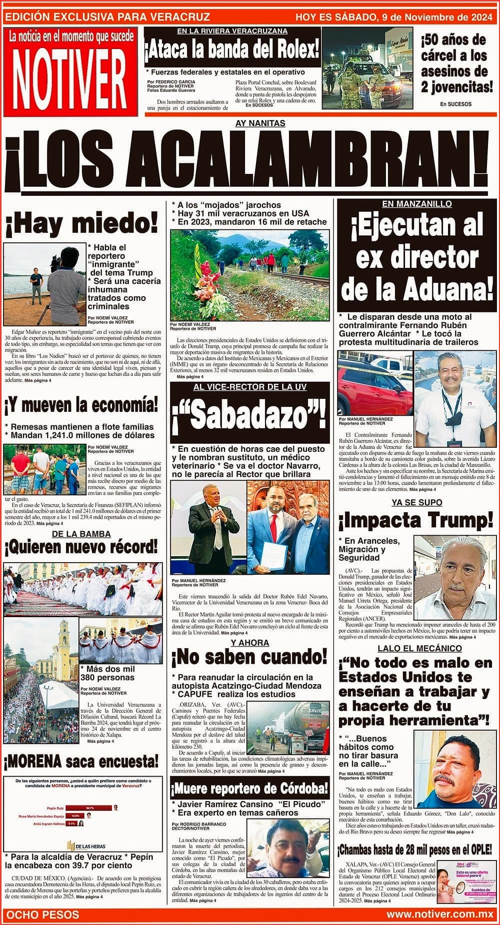 PRIMERA LA PORTADA - SÁBADO 9 DE NOVIEMBRE 2024 AY NANITAS - *A LOS “MOJADOS” JAROCHOS *HAY 31 MIL VERACRUZANOS EN USA *EN 2023, MANDARON 16 MIL DE RETACHE 9 noviembre 2024