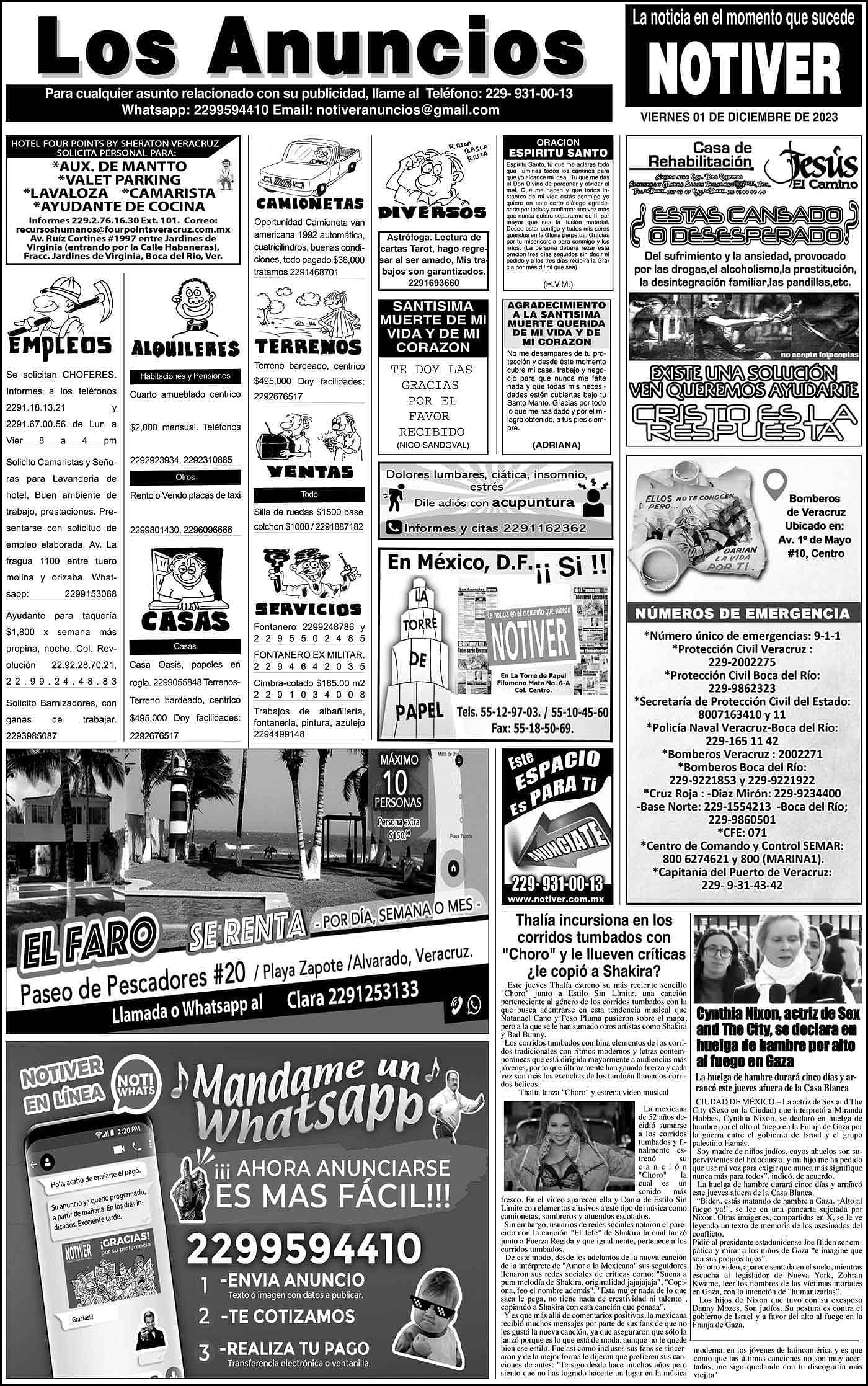 PRIMERA LA PORTADA - VIERNES, 1 DE DICIEMBRE 2023 POR FALTA DE JUSTICIA... - * ALTO A LA DISCRIMINACIÓN * EL DIPUTADE KY * PERSONAS CON VIH 1 diciembre 2023 Y LOS ANUNCIOS...Cotice su Anuncio Su Correo Electrónico: Texto: Enviar