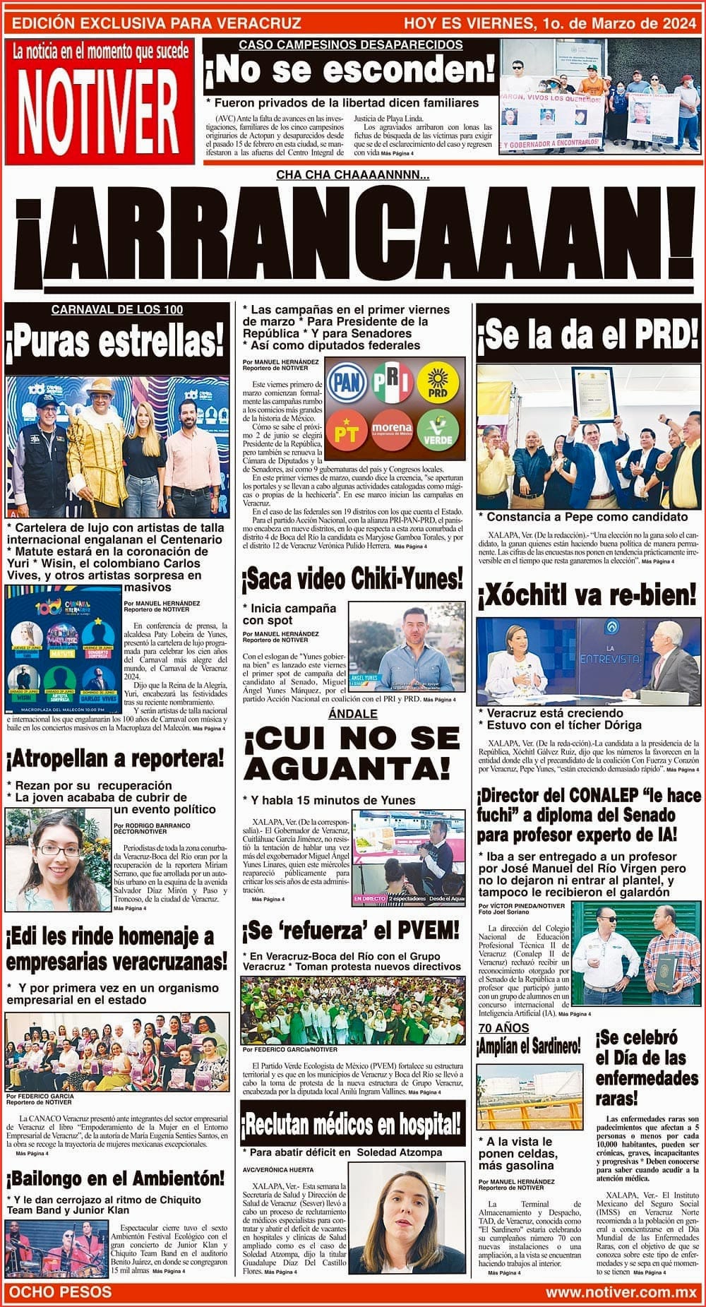 PRIMERA LA PORTADA - VIERNES 1 DE MARZO 2024 CHA CHA CHAAAANNNN... - * LAS CAMPAÑAS EN EL PRIMER VIERNES DE MARZO * PARA PRESIDENTE DE LA REPÚBLICA * Y PARA SENADORES * ASÍ COMO DIPUTADOS FEDERALES 1 marzo 2024 Y LOS ANUNCIOS...Cotice su Anuncio Su Correo Electrónico: Texto: Enviar