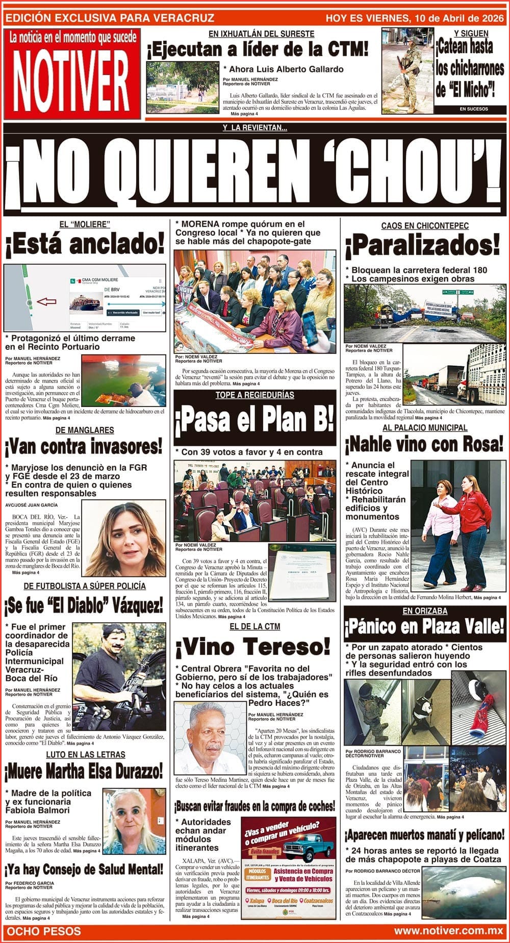 PRIMERA LA PORTADA - VIERNES 10 DE ABRIL 2026 Y LAREVIENTAN... - *MORENA ROMPE QUÓRUM EN EL CONGRESO LOCAL *YA NO QUIEREN QUE SE HABLE MÁS DEL CHAPOPOTE-GATE 10 abril 2026