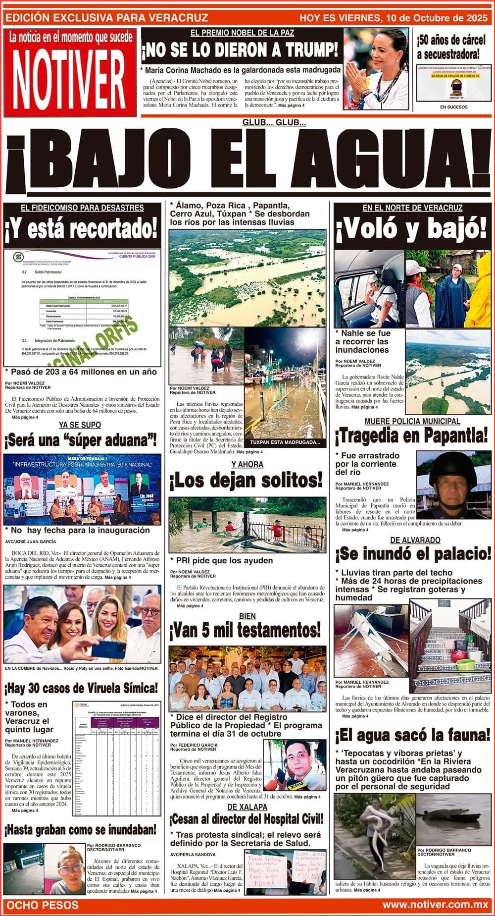 PRIMERA LA PORTADA - VIERNES 10 DE OCTUBRE 2025 GLUB... GLUB... - *ÁLAMO, POZA RICA , PAPANTLA, CERRO AZUL, TÚXPAN *SE DESBORDAN LOS RÍOS POR LAS INTENSAS LLUVIAS 10 octubre 2025