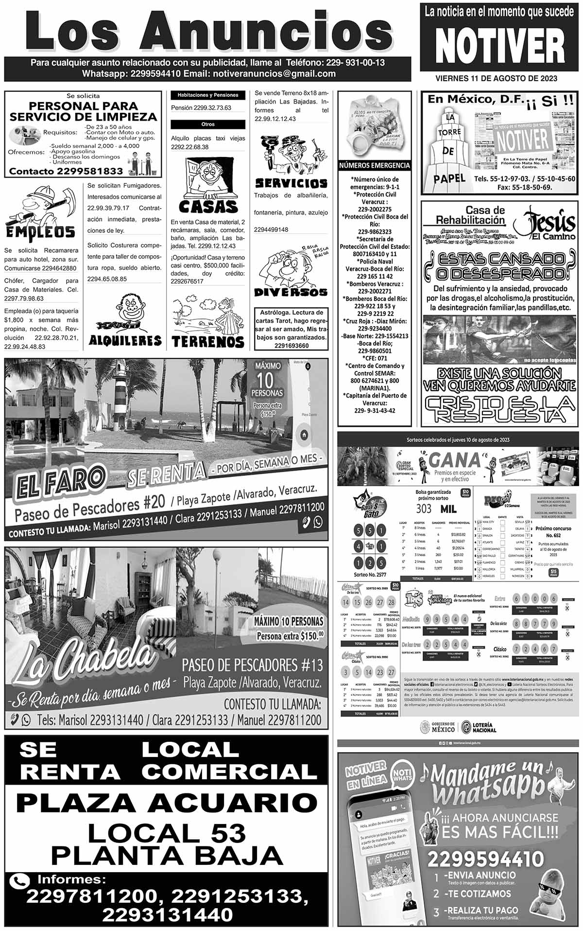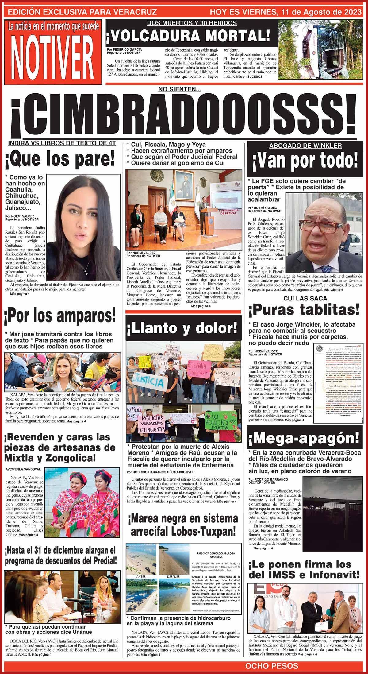PRIMERA LA PORTADA - VIERNES, 11 AGOSTO DE 2023 * CUI, FISCALA, MAGO Y YEYA * HACEN EXTRAÑAMIENTO POR AMPAROS * QUE SEGÚN EL PODER JUDICIAL FEDERAL * QUIERE DAÑAR AL GOBIERNO DE CUI 11 agosto 2023 Y LOS ANUNCIOS... Más Noticias ¡LOS ABANDONARON! - EN COYUTLA LA ENCUESTA | - LA RENUNCIARON! ¡YEYA YA ES FISCALA! - Y ES JAROCHA ¡SEGOB RECONOCE A PATY! ¡MATAN A DOS GANADEROS! - EN EL SUR DEL ESTADO - *En San Juan Evangelista y en Ciudad Isla ¡ACALAMBRAN A HÉCTOR! ¡VOLVERÁ ABRIR EL BALUARTE DE SANTIAGO! ¡NAHLE LE JALA LAS OREJAS A SU GABINETE! - TENÍA QUE SER ¡Y QUIÉN ES LISBETH AURELIA JIMÉNEZ AGUIRRE! ¡PAN Y MC SE PARTEN POR YEYA!