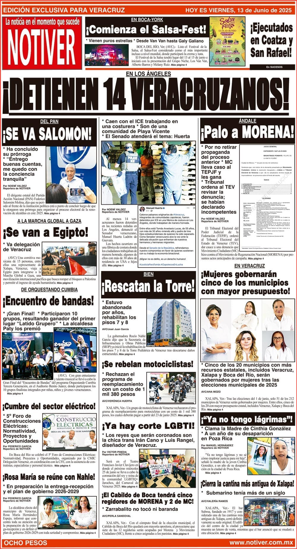 PRIMERA LA PORTADA - VIERNES 13 DE JUNIO 2025 EN LOS ÁNGELES - *CAEN CON EL ICE TRABAJANDO EN UNA COSTURERA *SON DE UNA COMUNIDAD DE PLAYA VICENTE *EL SENADO ATENDERÁ EL TEMA: HUERTA... 13 junio 2025