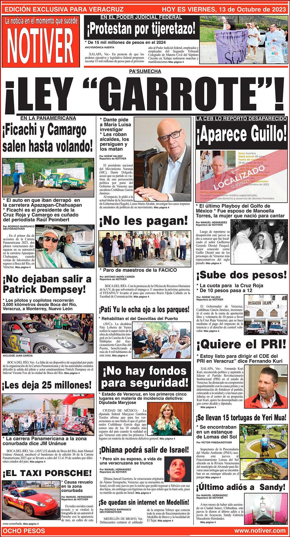 PRIMERA LA PORTADA - VIERNES, 13 DE OCTUBRE 2023 PA’SUMECHA - *DANTE PIDEA MARÍA LUISA INVESTIGAR * LES ROBAN ALCALDES, LOS PERSIGUEN Y LOS MATAN 13 octubre 2023 Y LOS ANUNCIOS...Cotice su Anuncio Su Correo Electrónico: Texto: Enviar