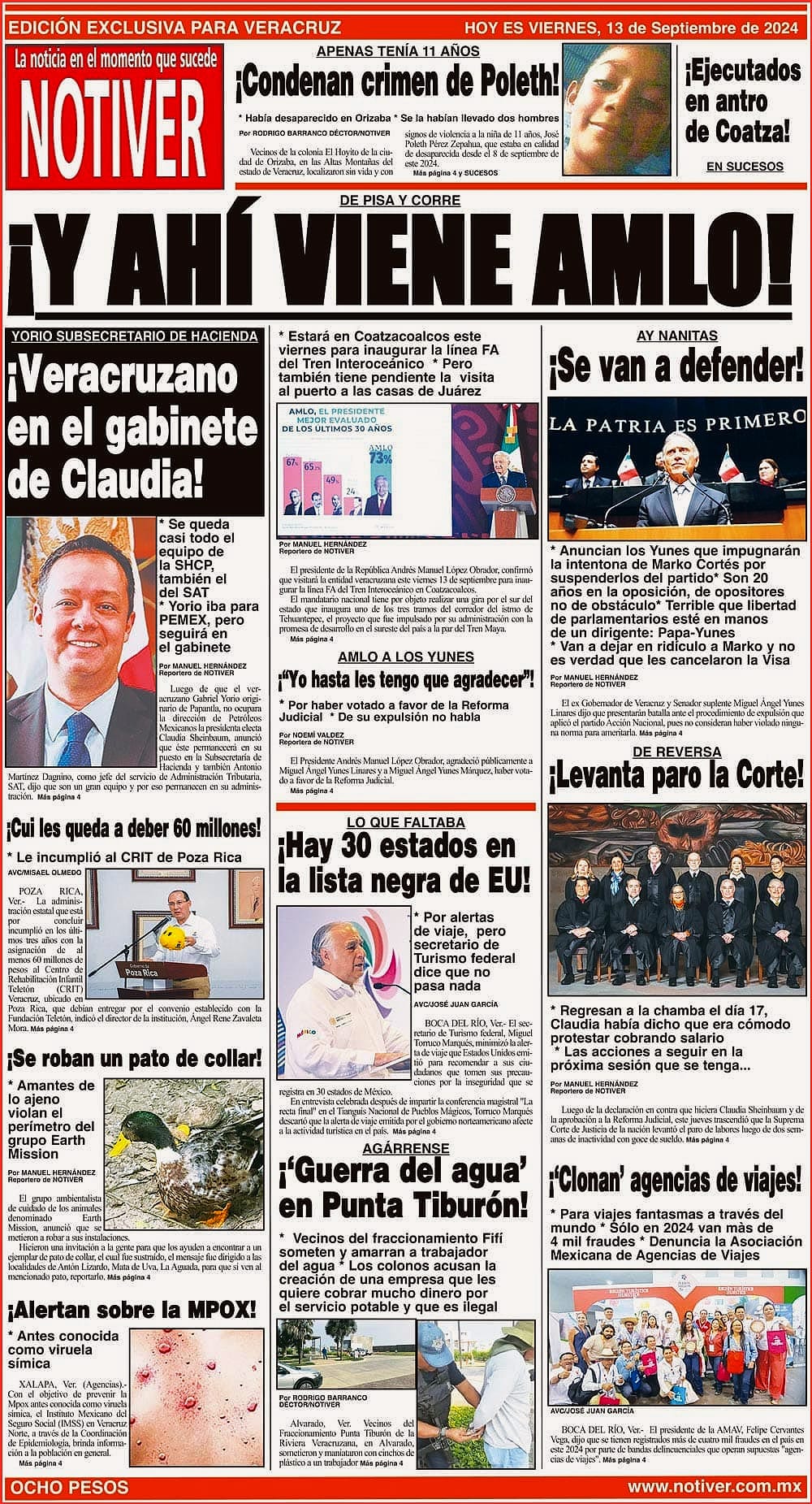 LA PORTADA - VIERNES 13 DE SEPTIEMBRE 2024