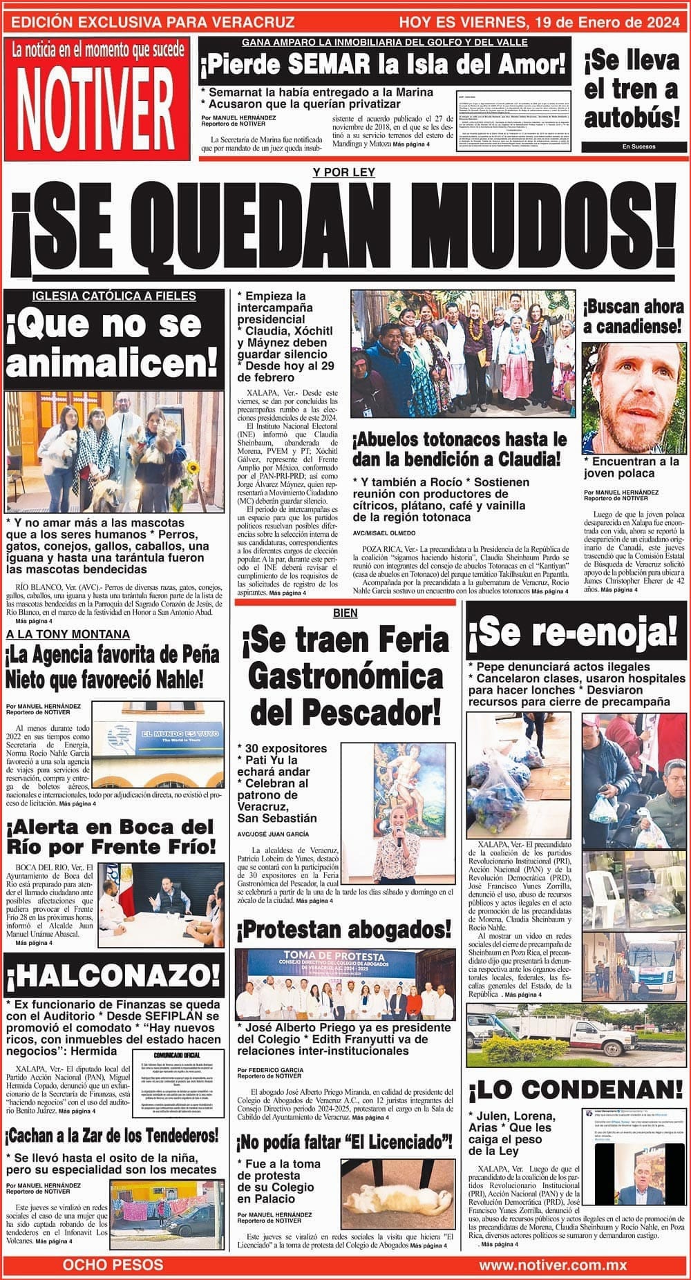 PRIMERA LA PORTADA - VIERNES 19 DE ENERO 2024 Y POR LEY - * EMPIEZA LA INTERCAMPAÑA PRESIDENCIAL * CLAUDIA, XÓCHITL Y MÁYNEZ DEBEN GUARDAR SILENCIO * DESDE HOY AL 29 DE FEBRERO 19 enero 2024 Y LOS ANUNCIOS...Cotice su Anuncio Su Correo Electrónico: Texto: Enviar