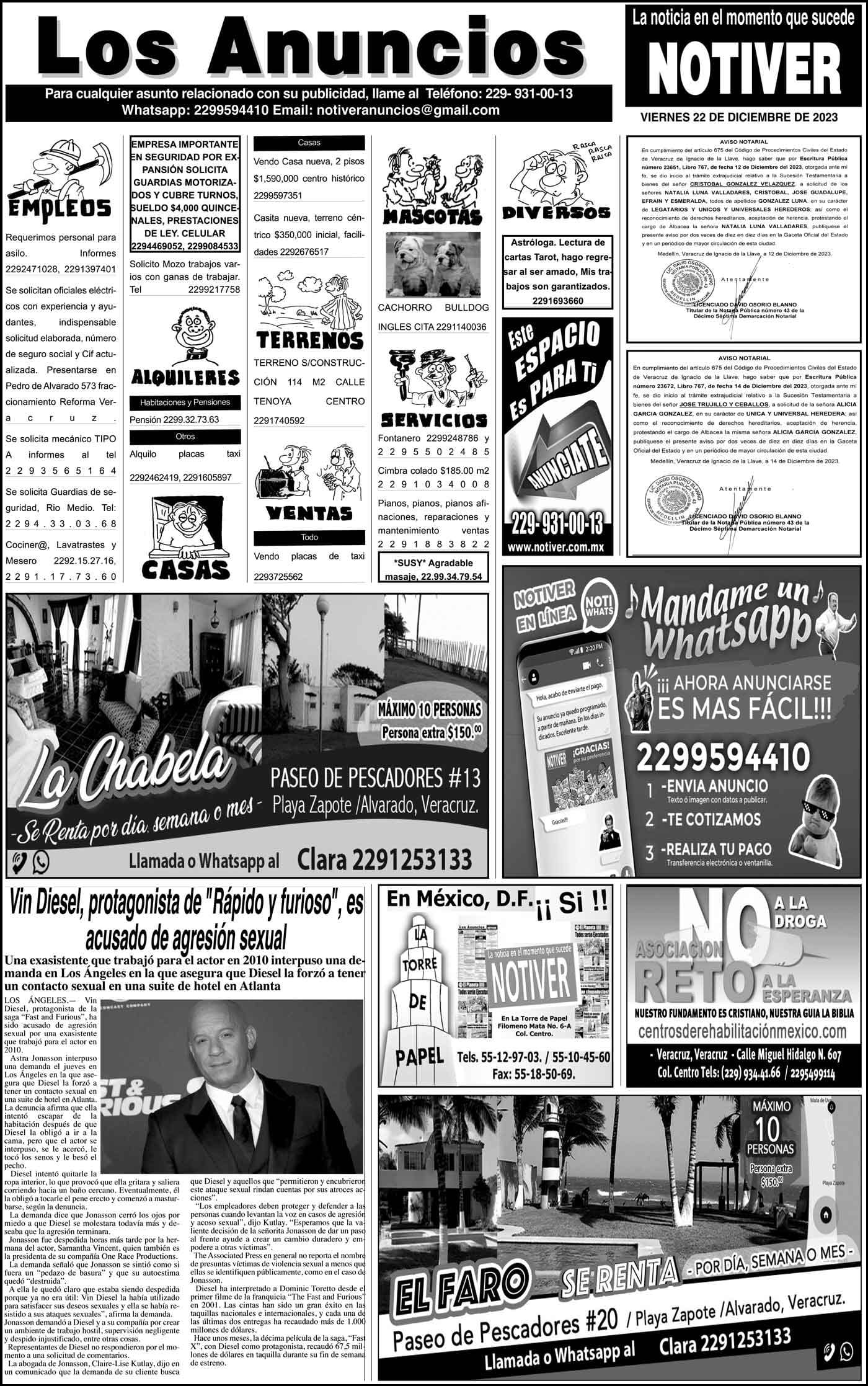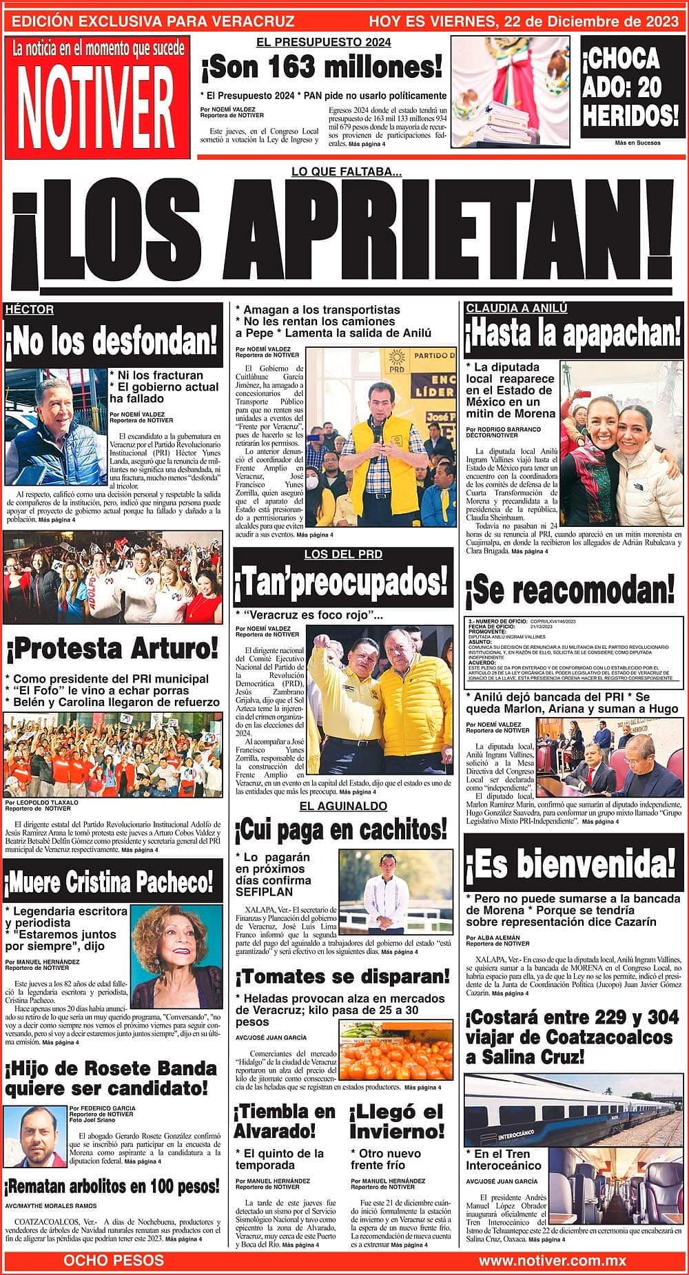 PRIMERA LA PORTADA - VIERNES 22 DE DICIEMBRE 2023 LO QUE FALTABA... - * AMAGAN A LOS TRANSPORTISTAS * NO LES RENTAN LOS CAMIONES A PEPE * LAMENTA LA SALIDA DE ANILÚ 22 diciembre 2023 Y LOS ANUNCIOS...Cotice su Anuncio Su Correo Electrónico: Texto: Enviar