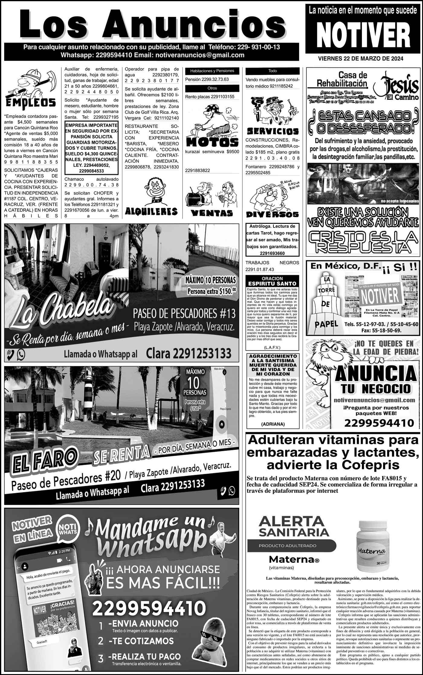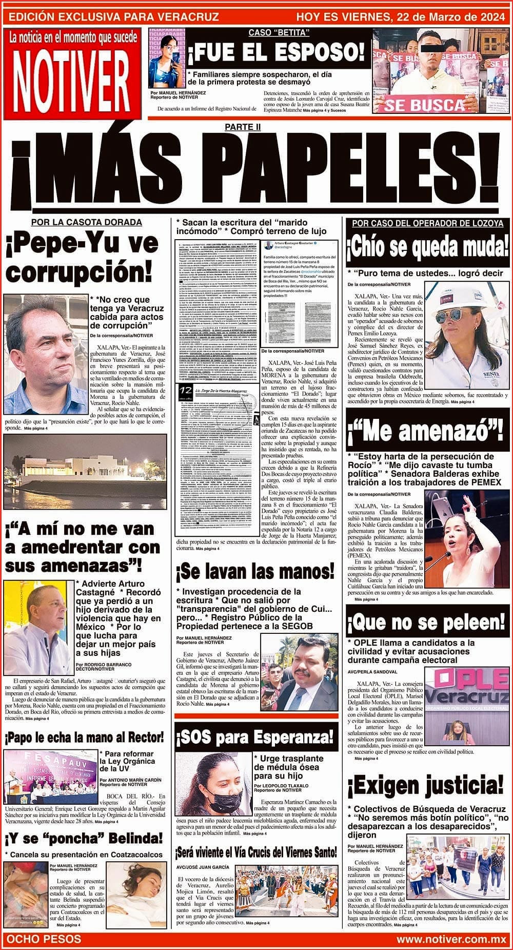 PRIMERA LA PORTADA - VIERNES 22 DE MARZO 2024 PARTE II - * SACAN LA ESCRITURA DEL “MARIDO INCÓMODO” * COMPRÓ TERRENO DE LUJO 22 marzo 2024 Y LOS ANUNCIOS...Cotice su Anuncio Su Correo Electrónico: Texto: Enviar