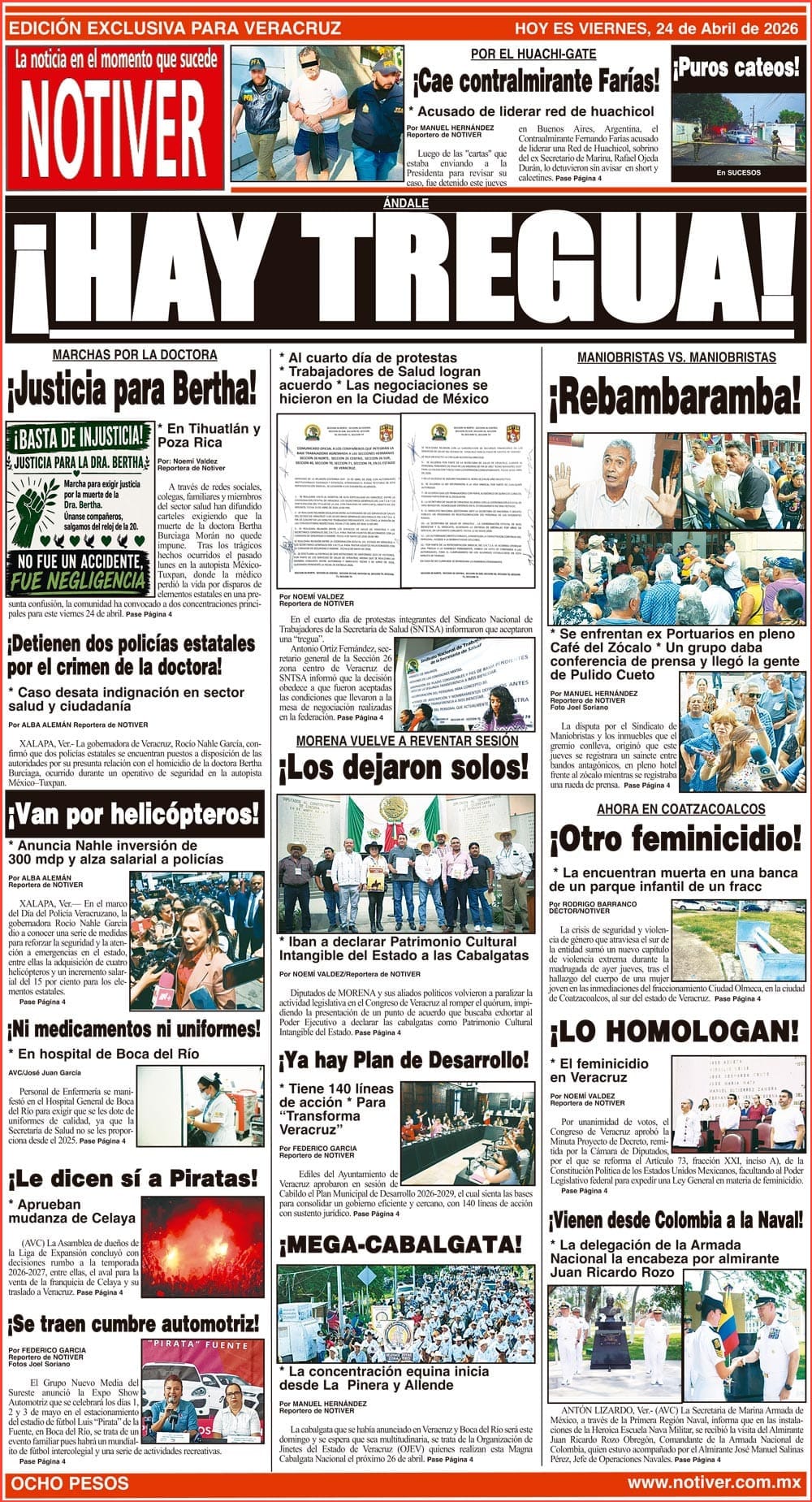 PRIMERA LA PORTADA - VIERNES 24 DE ABRIL 2026 ÁNDALE - *AL CUARTO DÍA DE PROTESTAS *TRABAJADORES DE SALUD LOGRAN ACUERDO *LAS NEGOCIACIONES SE HICIERON EN LA CIUDAD DE MÉXICO 24 abril 2026