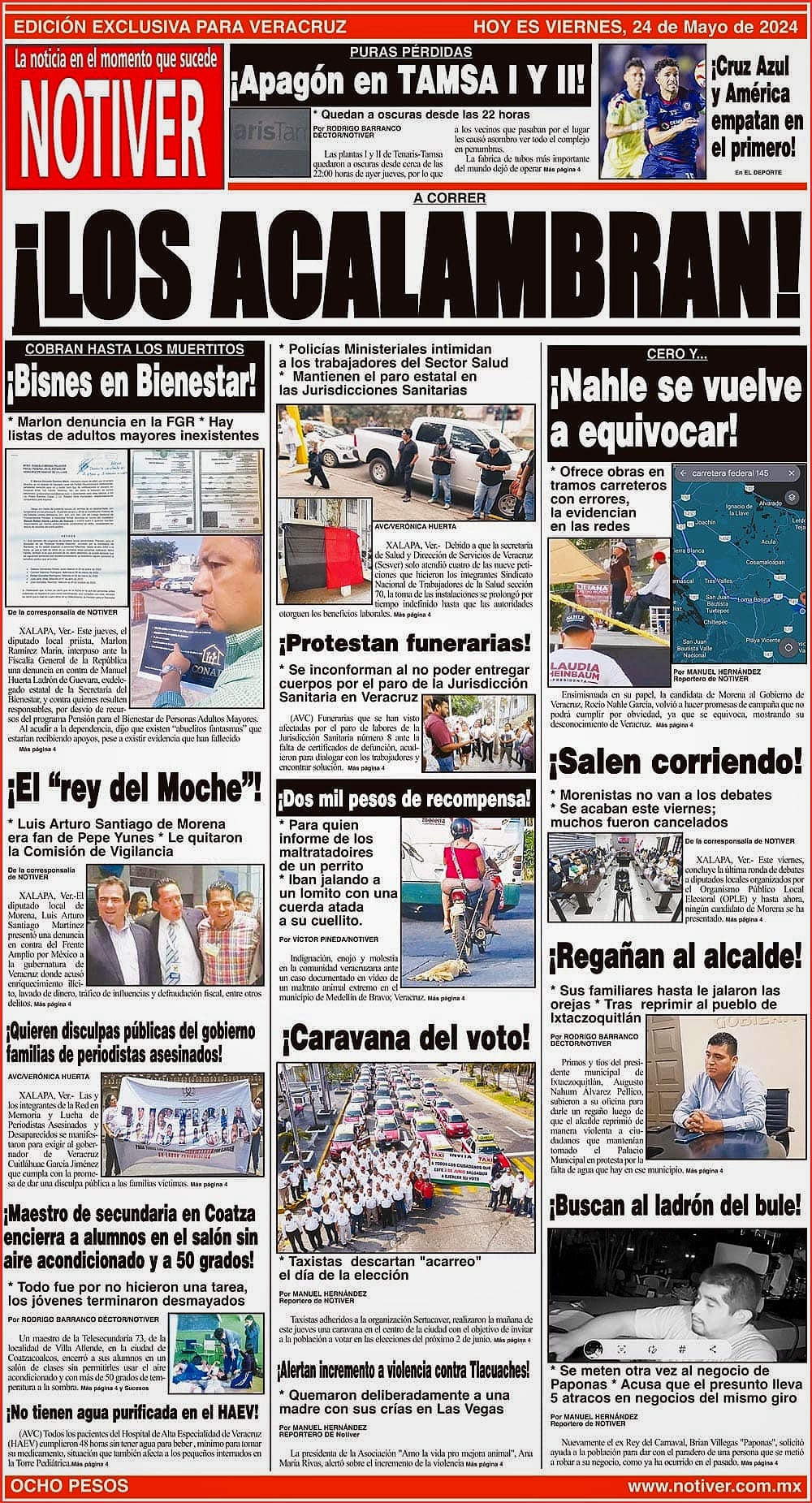 PRIMERA LA PORTADA - VIERNES 24 DE MAYO 2024 A CORRER - * POLICÍAS MINISTERIALES INTIMIDAN A LOS TRABAJADORES DEL SECTOR SALUD * MANTIENEN EL PARO ESTATAL EN LAS JURISDICCIONES SANITARIAS 24 mayo 2024