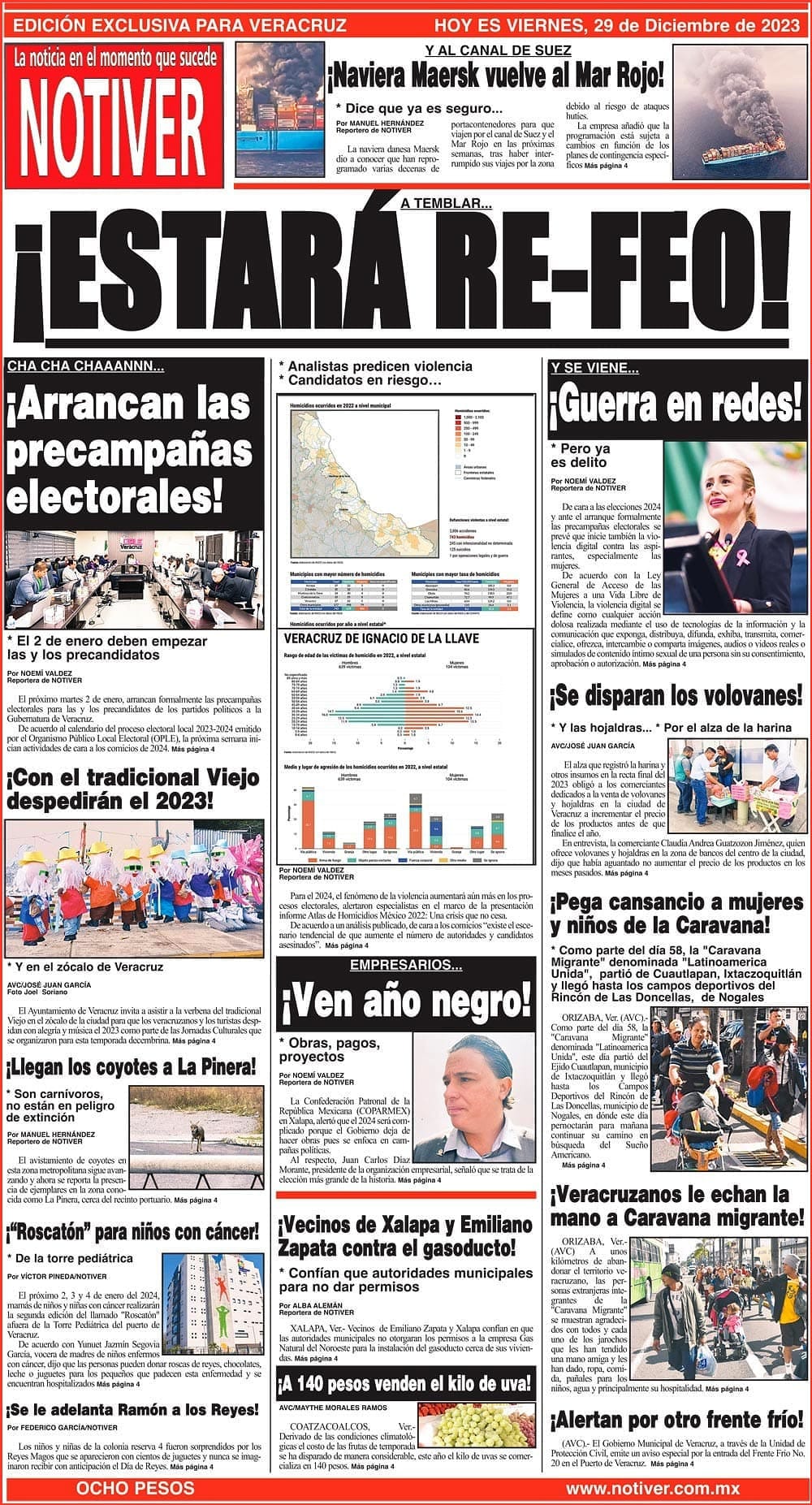 PRIMERA LA PORTADA - VIERNES 29 DE DICIEMBRE 2023 A TEMBLAR... - * ANALISTAS PREDICEN VIOLENCIA * CANDIDATOS EN RIESGO… 29 diciembre 2023 Y LOS ANUNCIOS...Cotice su Anuncio Su Correo Electrónico: Texto: Enviar