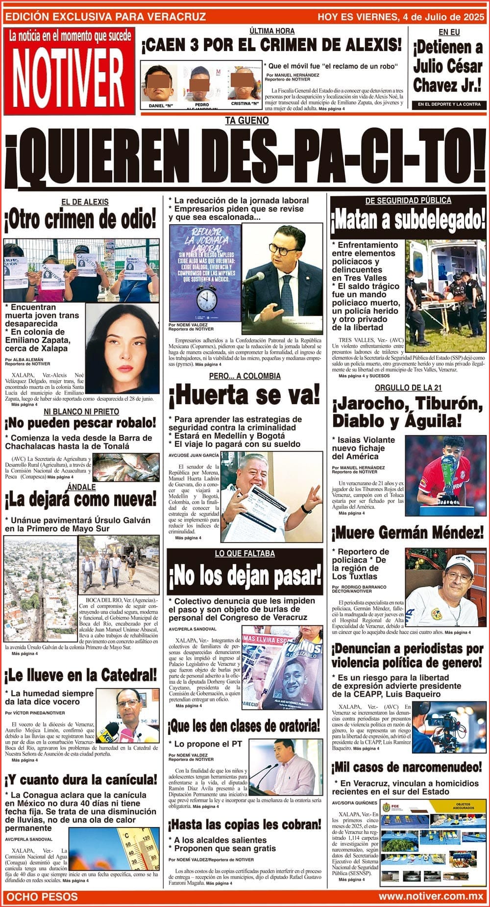 PRIMERA LA PORTADA - VIERNES 4 DE JULIO 2025 TA GUENO - *LA REDUCCIÓN DE LA JORNADA LABORAL *EMPRESARIOS PIDEN QUE SE REVISE Y QUE SEA ESCALONADA... 4 julio 2025