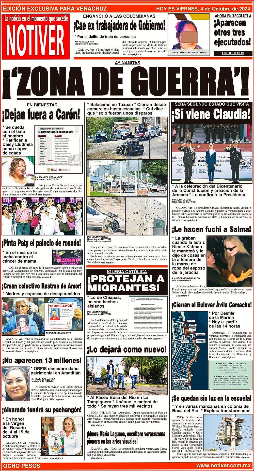 PRIMERA LA PORTADA - VIERNES 4 DE OCTUBRE 2024 AY NANITAS - * BALACERAS EN TUXPAN * CIERRAN DESDE COMERCIOS HASTA ESCUELAS * CUI DICE QUE “SOLO FUERON UNOS DISPAROS” 4 octubre 2024