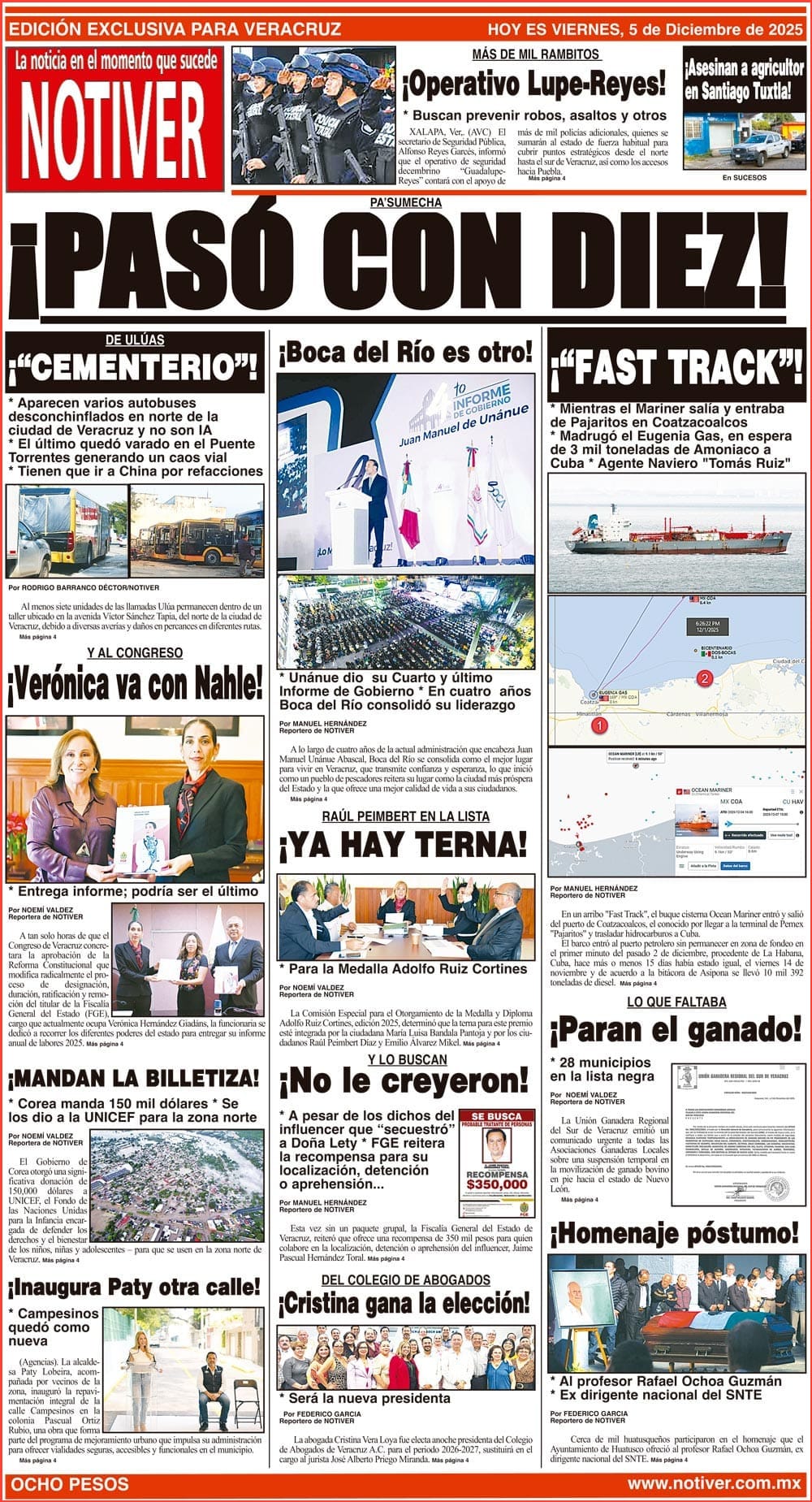 PRIMERA LA PORTADA - VIERNES 5 DE DICIEMBRE 2025 PA’SUMECHA - *UNÁNUE DIO SU CUARTO Y ÚLTIMO INFORME DE GOBIERNO *EN CUATRO AÑOS BOCA DEL RÍO CONSOLIDÓ SU LIDERAZGO 5 diciembre 2025