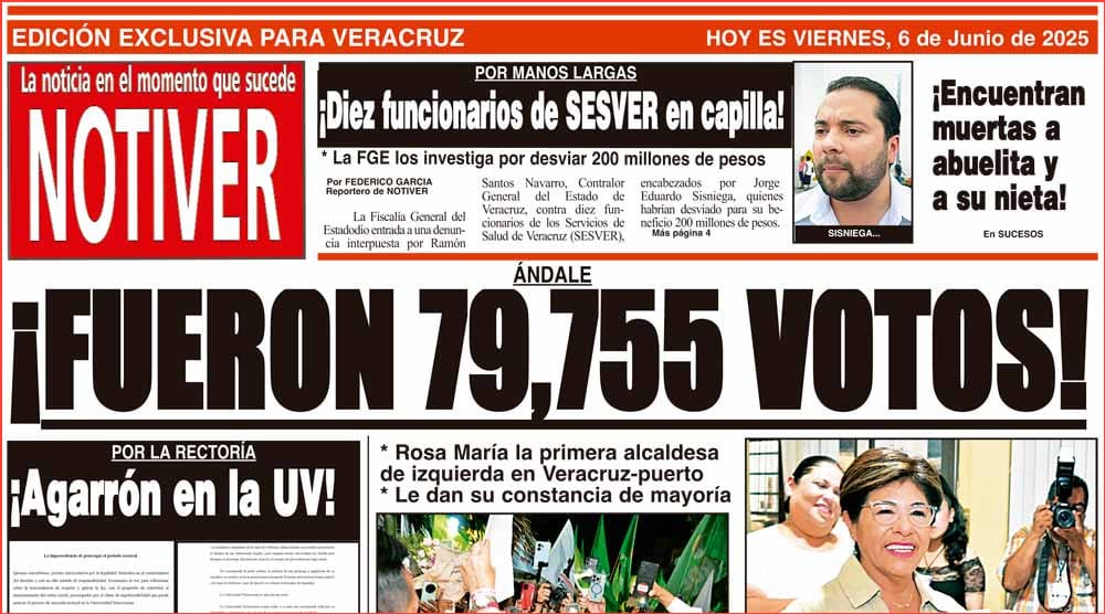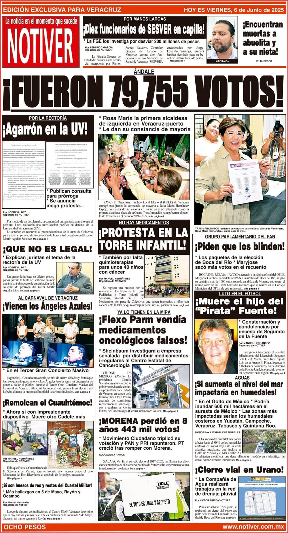 PRIMERA LA PORTADA - VIERNES 6 DE JUNIO 2025 ÁNDALE - *ROSA MARÍA LA PRIMERA ALCALDESA DE IZQUIERDA EN VERACRUZ-PUERTO *LE DAN SU CONSTANCIA DE MAYORÍA 6 junio 2025