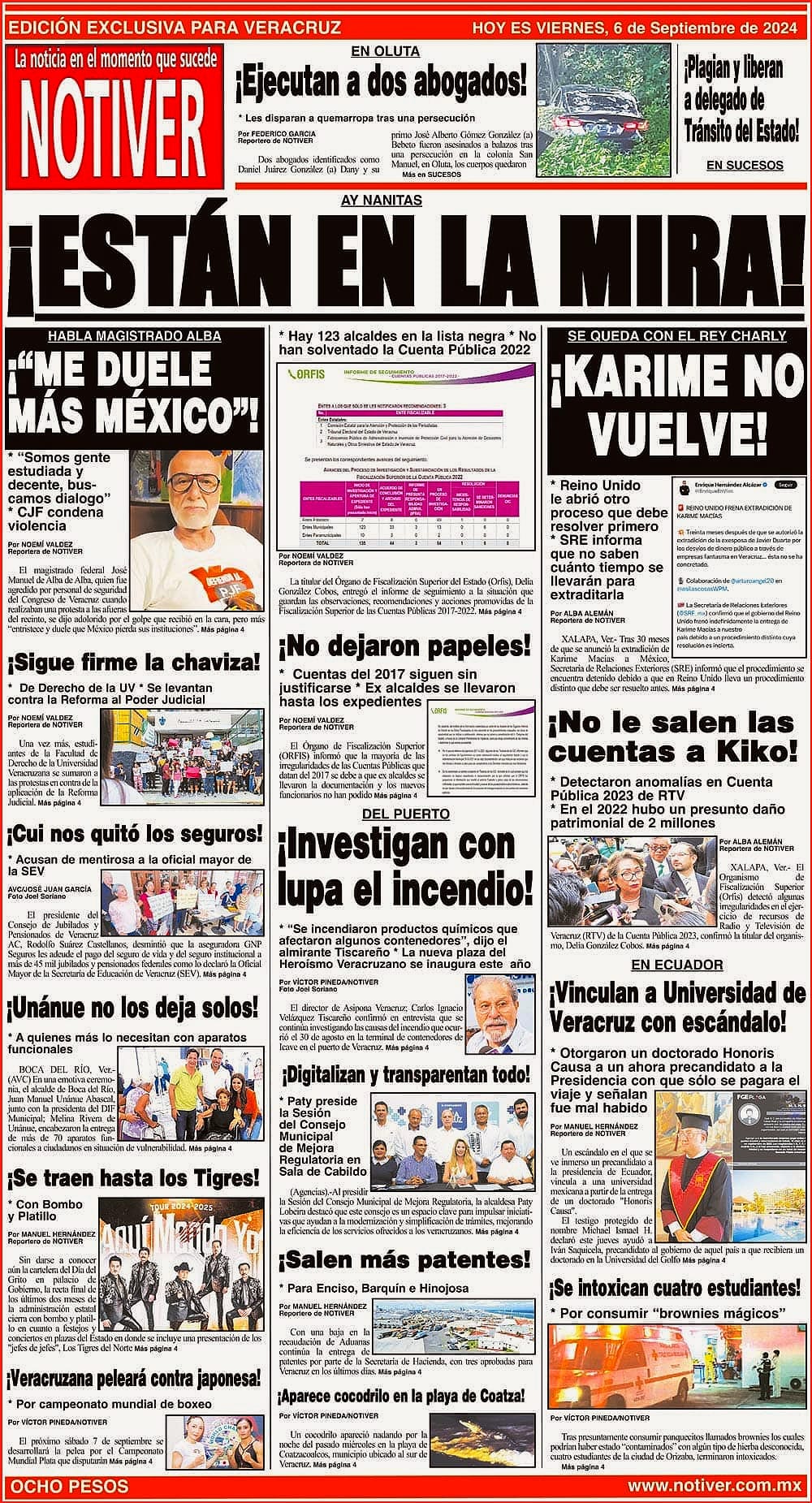 PRIMERA LA PORTADA - VIERNES 6 DE SEPTIEMBRE 2024 AY NANITAS - *HAY 123 ALCALDES EN LA LISTA NEGRA *NO HAN SOLVENTADO LA CUENTA PÚBLICA 2022 6 septiembre 2024