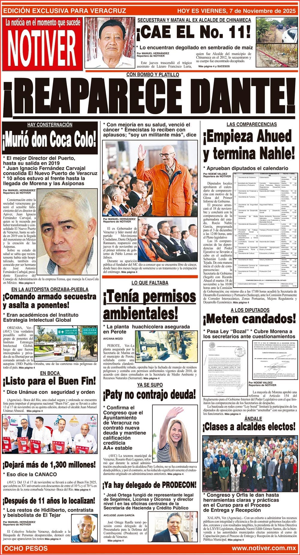 PRIMERA LA PORTADA - VIERNES 7 DE NOVIEMBRE 2025 CON BOMBO Y PLATILLO - *CON MEJORÍA EN SU SALUD, VENCIÓ EL CÁNCER *EMECISTAS LO RECIBEN CON APLAUSOS; "SOY UN MILITANTE MÁS", DICE 7 noviembre 2025