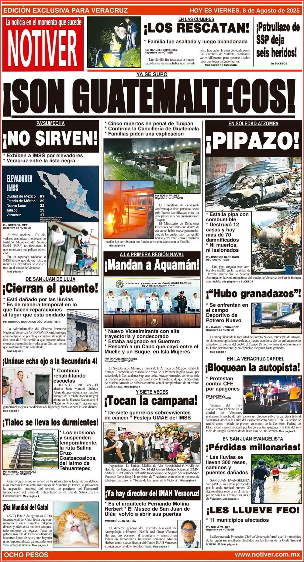 PRIMERA LA PORTADA - VIERNES 8 DE AGOSTO 2025 YA SE SUPO - *CINCO MUERTOS EN PENAL DE TUXPAN *CONFIRMA LA CANCILLERÍA DE GUATEMALA *FAMILIAS PIDEN UNA EXPLICACIÓN 8 agosto 2025