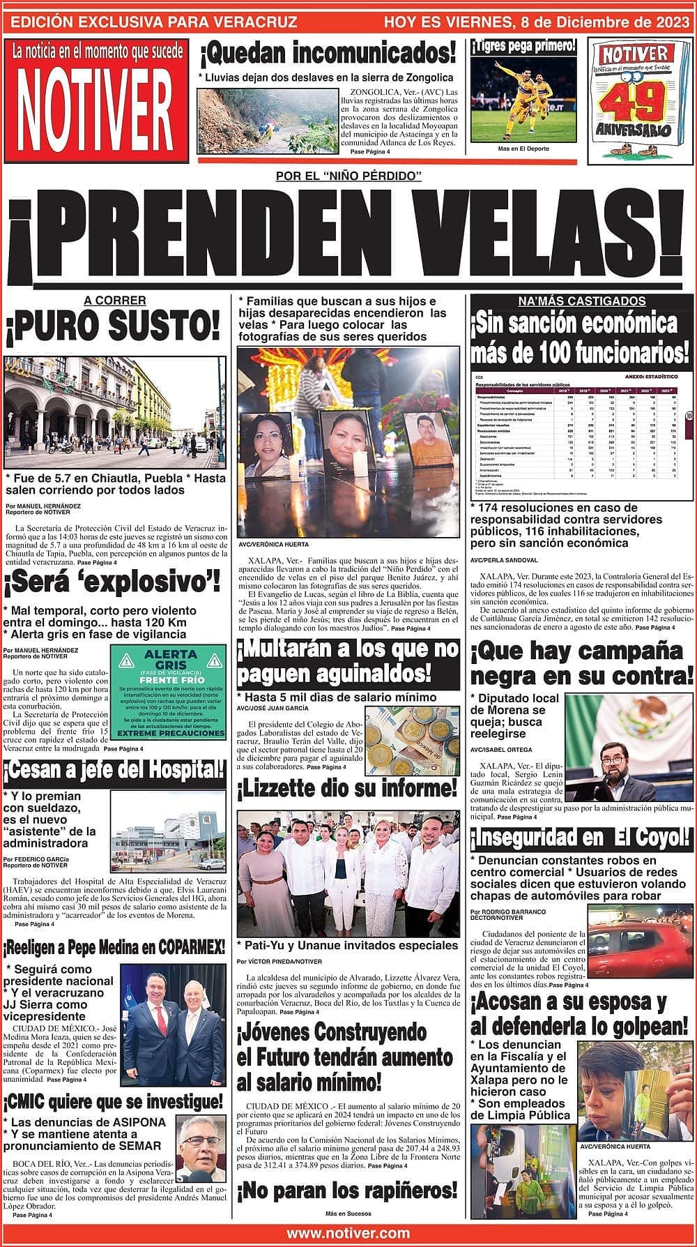 PRIMERA LA PORTADA - VIERNES 8 DE DICIEMBRE 2023 POR EL “NIÑO PÉRDIDO” - * FAMILIAS QUE BUSCAN A SUS HIJOS E HIJAS DESAPARECIDAS ENCENDIERON LAS VELAS * PARA LUEGO COLOCAR LAS FOTOGRAFÍAS DE SUS SERES QUERIDOS 8 diciembre 2023 Y LOS ANUNCIOS...Cotice su Anuncio Su Correo Electrónico: Texto: Enviar