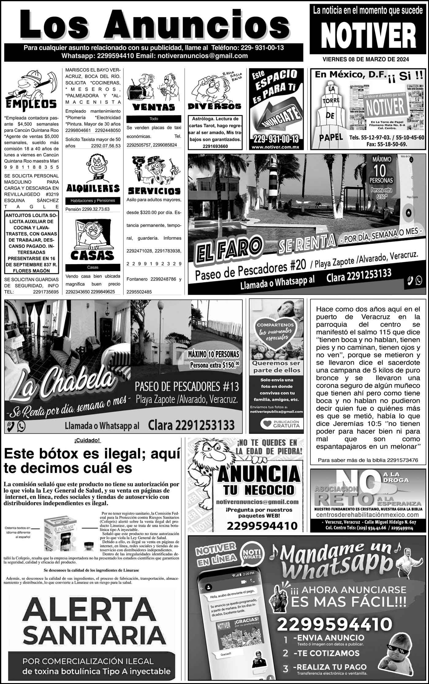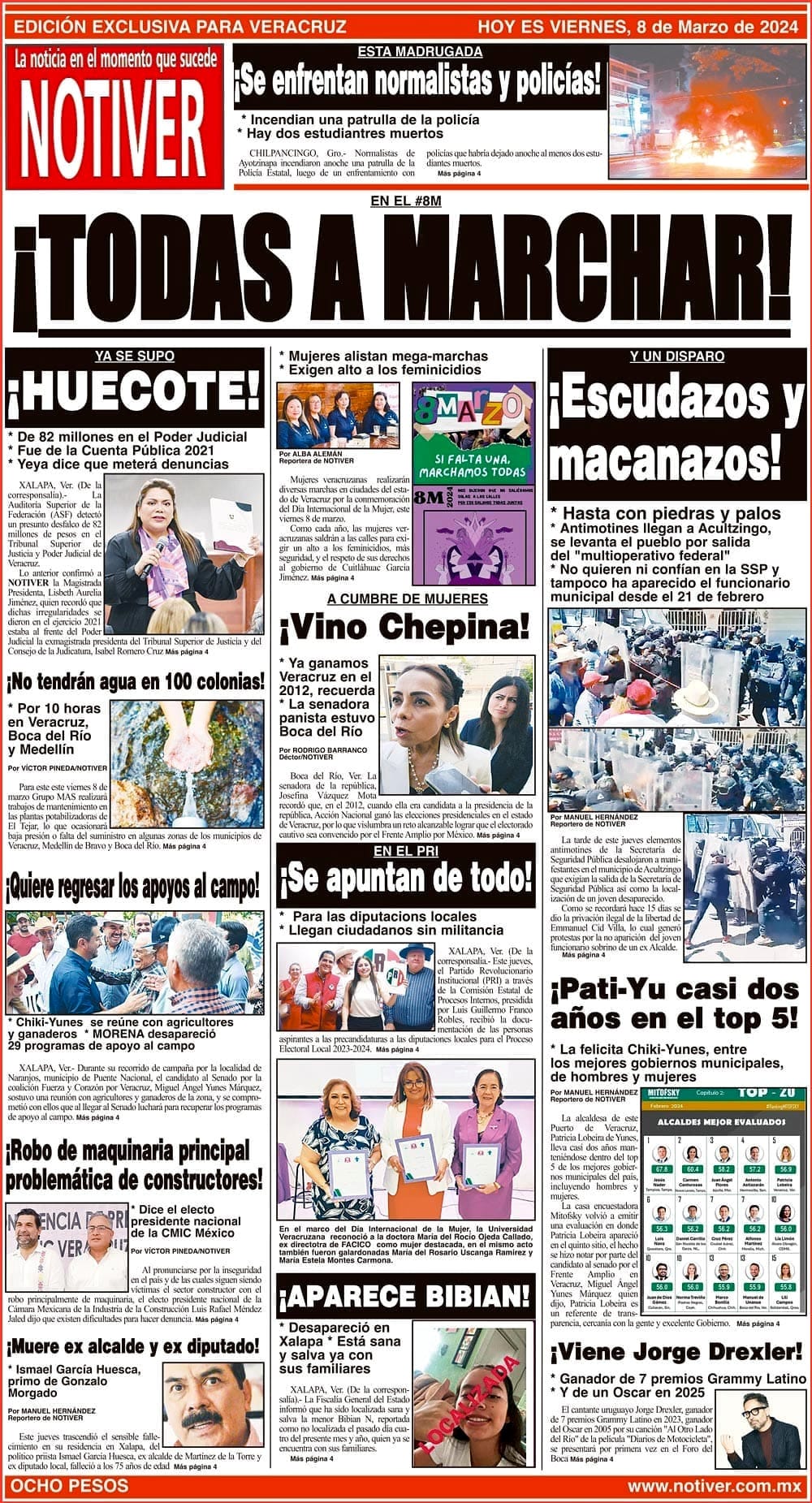 PRIMERA LA PORTADA - VIERNES 8 DE MARZO 2024 ¡TODAS A MARCHAR! - * MUJERES ALISTAN MEGA-MARCHAS * EXIGEN ALTO A LOS FEMINICIDIOS 8 marzo 2024 Y LOS ANUNCIOS...Cotice su Anuncio Su Correo Electrónico: Texto: Enviar