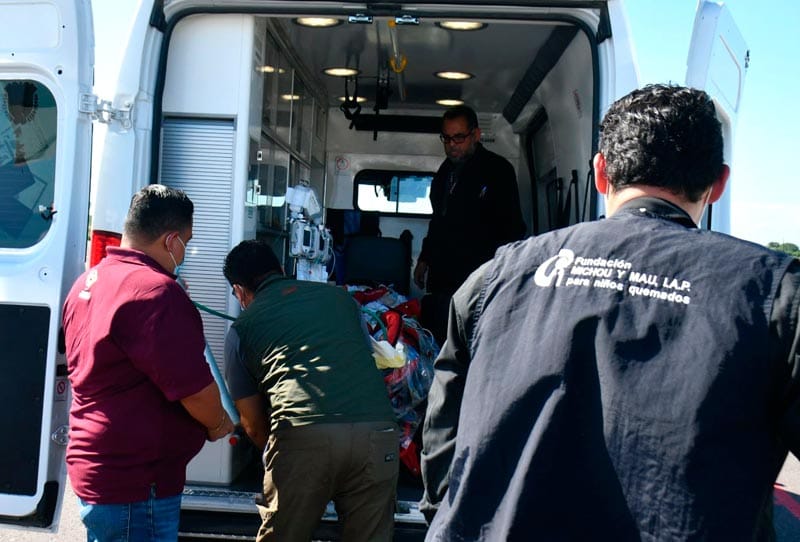 Tras una evaluación médica se determinó el traslado vía ambulancia aérea a la clínica Shriners en Texas; dado que Perla y Graciela presentan quemaduras de segundo y tercer grado; la primera en ser trasladada fue Perla al medio día de este jueves 27 de noviembre, mientras que el traslado de Graciela se hará en las próximas horas.