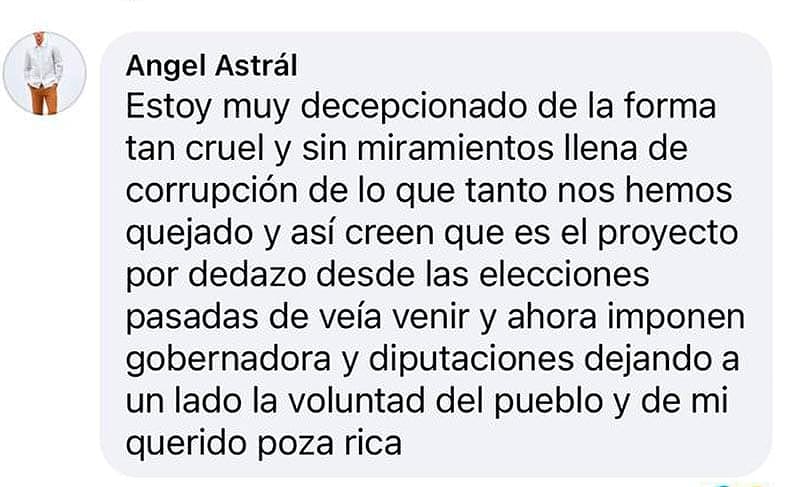 “Es una tristeza que siga haciendo estás torpezas Esteban Ramírez Zepeta, usted con su dedito santo designa candidaturas mientras que a nosotros se nos hacen los reclamos.... Recuerde que el pueblo es sabio”