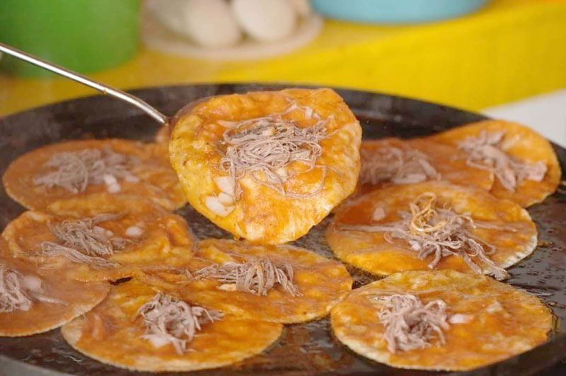 De acuerdo a los lugareños, la gar- nacha nace porque un pasajero llega a la estación de tren y pide un antojito rápido. La señora Ángela Durán toma una tortilla de mano, con salsa, carne de res y cebolla, y en el comal nace este platillo ahora convertido en tradi- ción que forma parte de la gastronomía veracruzana.