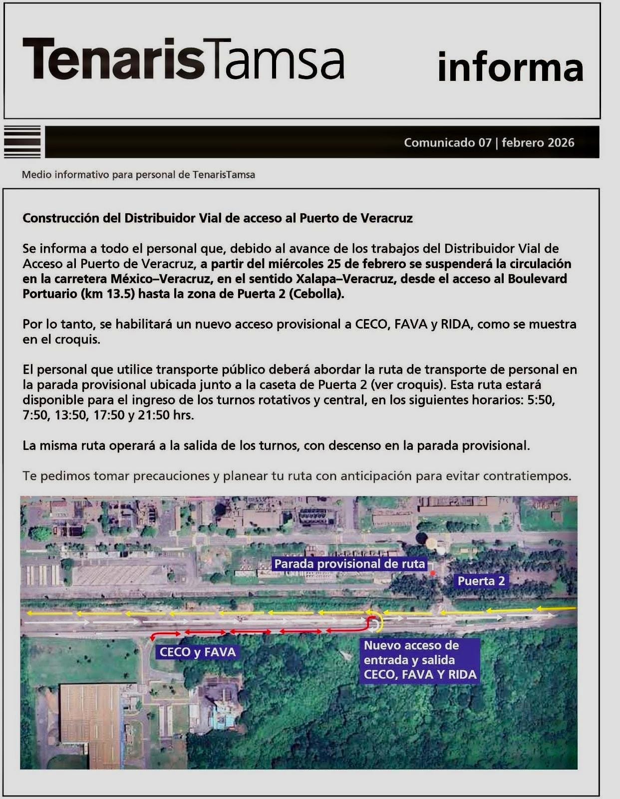 Las mejoras en el Distribuidor Vial de Acceso al Puerto de Veracruz dieron inicio en junio de 2025 y contemplan calles laterales, obras de drenaje y complementarias; instalación de pavimento de concreto asfáltico, así como señalamiento vertical y horizontal en la Carretera Federal MEX 140, Xalapa-Veracruz.