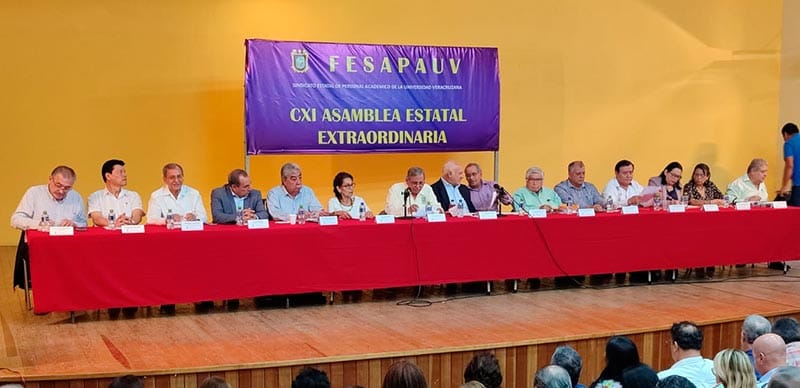 En el auditorio de la sede estatal del FESAPAUV, en la calle de Madero 178, el ingeniero subrayó que en el tema del presupuesto a la UV, se va a seguir luchando para que se mejore.