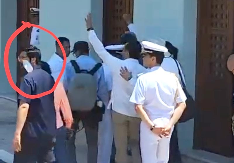 En esos segundos llovieron los huevazos, uno le pasó por arriba de su cabeza al mandatario, otro le pegó a un mando naval que estaba con su traje de gala, otro más en los pies de otro elemento de la Marina y otro pegó en el suelo.