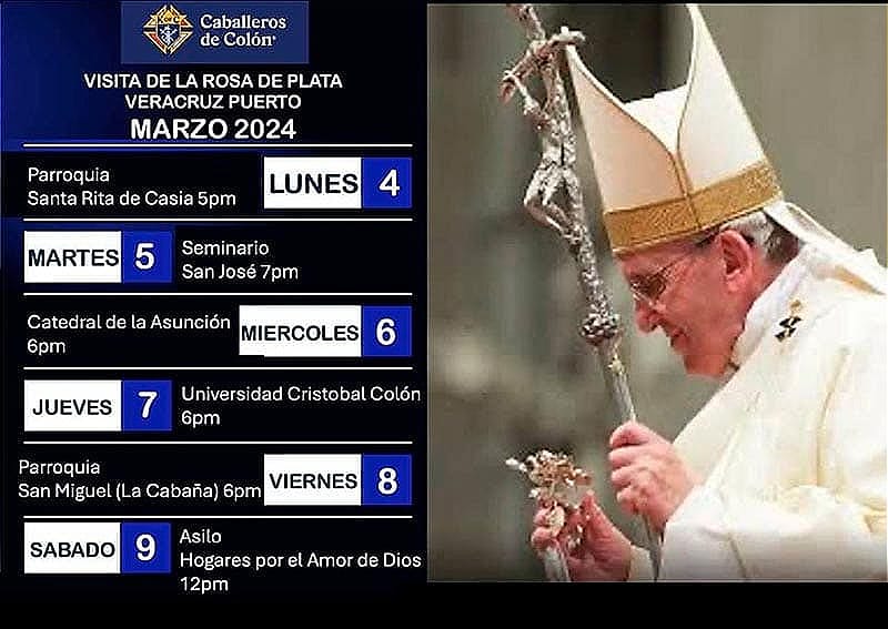 De acuerdo a la información proporcionada por los Caballeros del Colón, "La Rosa de Plata" va a estar en distintos lugares de la zona conurbada Boca del Río y Veracruz, y en algunas parroquias.