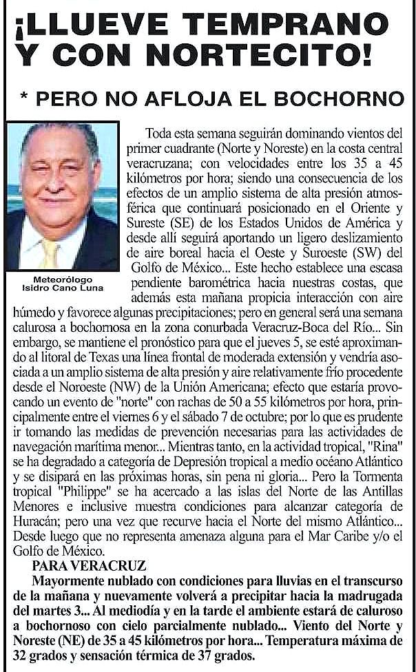 PRIMERA ¡LLUEVE TEMPRANO Y CON NORTECITO! * PERO NO AFLOJA EL BOCHORNO 2 octubre 2023 Más Noticias ¡TERROR EN PALMA REAL! - EXPLOSIÓN E INCENDIO... ¡MUERE RAMÓN CANO BELTRÁN! - HAY CONSTERNACIÓN ¡SE LA REVIRA MORENA! - AGARRENSE ¡AGREDEN A REPORTEROS! - EN COATEPEC ¡CONDENAN A EX FUNCIONARIO DE DUARTE! - POR DESAPARICIÓN FORZADA ¡HASTA 70 ASALTOS! - Y DIARIOS... ¡COLECTIVOS VAN CON LA FISCALA! - *Ahora sí acuerdan reforzar búsqueda de desaparecidos, pero señalan falta de presupuesto, personal y avances en las investigaciones ¡SE FUE EL ÚLTIMO MURALISTA! - MELCHOR PEREDO LA ENCUESTA | - DICE QUE HA SER OTRO DERRAME! ¡YA HAY FECHA DEL SALSAFEST! - *Del 12, 13 y 14 de junio en el Salsódromo de Boca