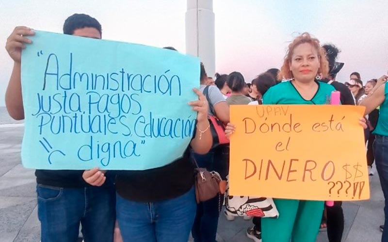 Los maestros solidarios denuncian llevar cerca de nueve meses sin recibir salario a pesar de que la UPAV es un organismo autónomo que opera con sus propios recursos de inscripciones y cuotas, varios estudiantes reportaron que aparecían dados de baja del sistema institucional sin previo aviso.