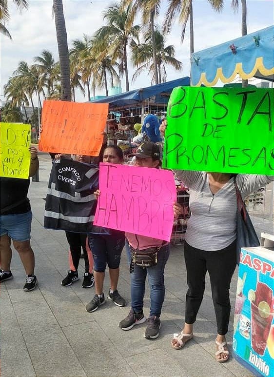 Más de una decena de vendedores ambulantes se manifestaron esta mañana el bulevar Manuel Ávila Camacho, frente al emblemático Aquarium de Veracruz para buscar una solución para renovar sus permisos, ya que aseguran, serán reubicados.