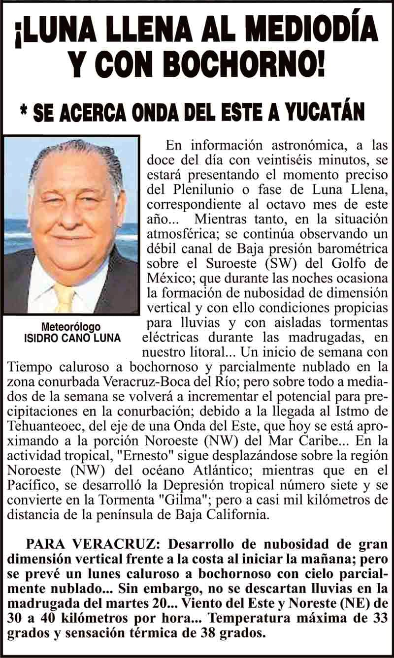 PRIMERA ¡LUNA LLENA AL MEDIODÍA Y CON BOCHORNO! - *SE ACERCA ONDA DEL ESTE A YUCATÁN 19 agosto 2024 Más Noticias ¡YA HAY TERNA! - RAÚL PEIMBERT EN LA LISTA ¡“CEMENTERIO”! - DE ULÚAS ¡INAUGURA PATY OTRA CALLE! ¡NO LE CREYERON! - Y LO BUSCAN NOTI-MEME | - ECOS DEL INFORME! ¡VERÓNICA VA CON NAHLE! - Y AL CONGRESO ¡“FAST TRACK”! - *Mientras el Mariner salía y entraba de Pajaritos en Coatzacoalcos ¡OPERATIVO LUPE-REYES! ¡MANDAN LA BILLETIZA! - *Corea manda 150 mil dólares ¡CRISTINA GANA LA ELECCIÓN!