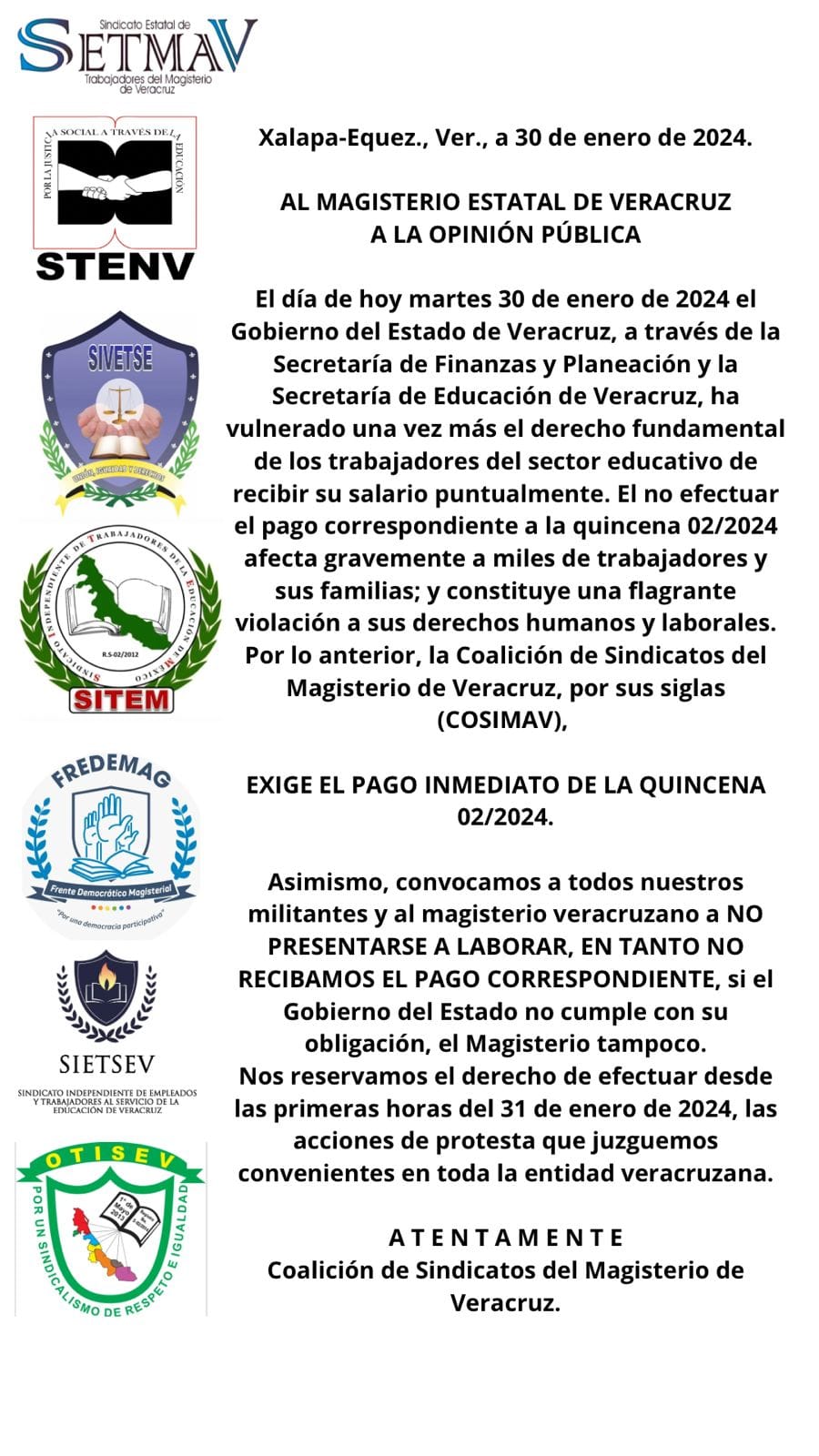Una maestra de educación básica platicó su sentir, luego de que el 30 de enero de este 2024, el gobierno del estado de Veracruz no hiciera el depósito correspondiente de sus salarios a los docentes estatales.