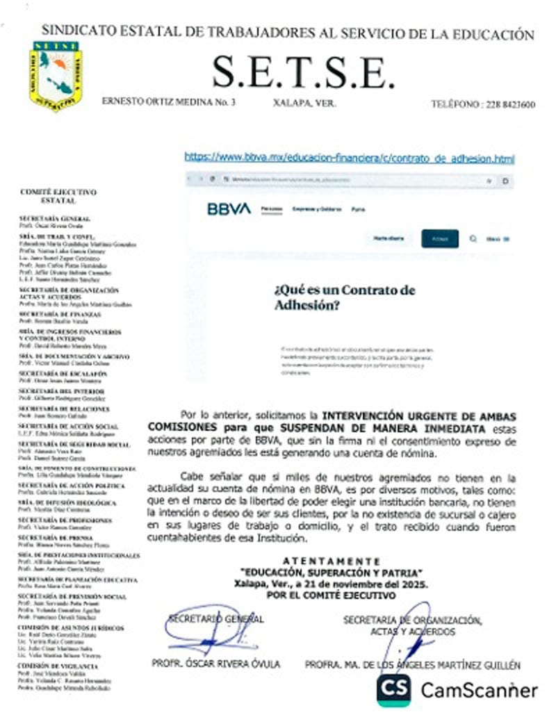 El Setse, a través de su secretario general, Óscar Rivera Óvula, advirtió además que el cambio forzado de institución bancaria podría afectar las obligaciones financieras de muchos empleados, como créditos hipotecarios, automotrices o pagos domiciliados vinculados a sus cuentas específicas.