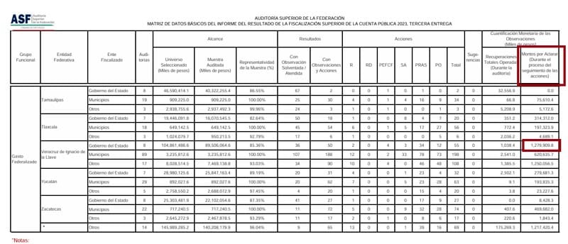 Xalapa, Ver.- La Auditoría Superior de la Federación (ASF) identificó irregularidades en el manejo de 3 mil 150 millones de pesos en Veracruz, correspondientes a la Cuenta Pública 2023.