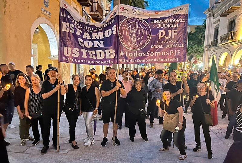 Una caminata corta pero lenta y que se realizó al atardecer; las consignas; sin poder judicial quién te va a amparar, jueces imparciales de carrera judicial, si México se informa no pasa la reforma, poder judicial contrapeso nacional, sin color y sin partido la justicia se ha impartido.