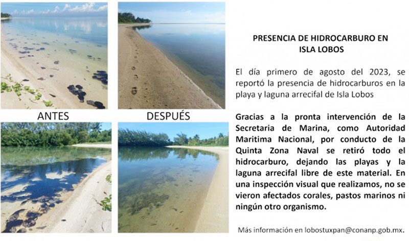 Se informó que la Secretaría de Marina ayuda con las labores de limpieza para retirar la presencia de hidrocarburo.