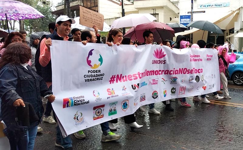 XALAPA, Ver. (De la corresponsalía).- “Nuestra Democracia No se Toca” con esa consigna miles de personas salieron a las calles en el Estado de Veracruz para demandar un alto a la intromisión de autoridades en el presente proceso electoral.