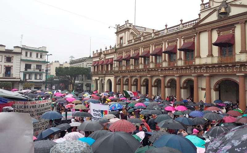 En la capital del Estado, los asistentes llegaron a la marcha con paraguas, botas, impermeables y caminaron bajo la lluvia; lo mismo sucedió en Perote.