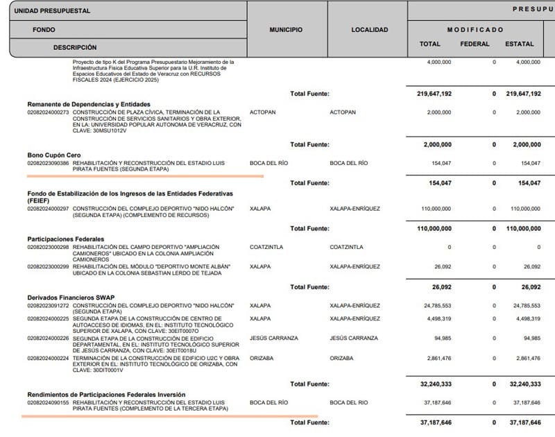 Hasta noviembre del 2024, la remodelación del Estadio llevaba una inversión de mil 694 millones de pesos absorbiendo la mayor parte del recurso que se otorgó como presupuesto a la Secretaría de Educación de Veracruz (SEV).